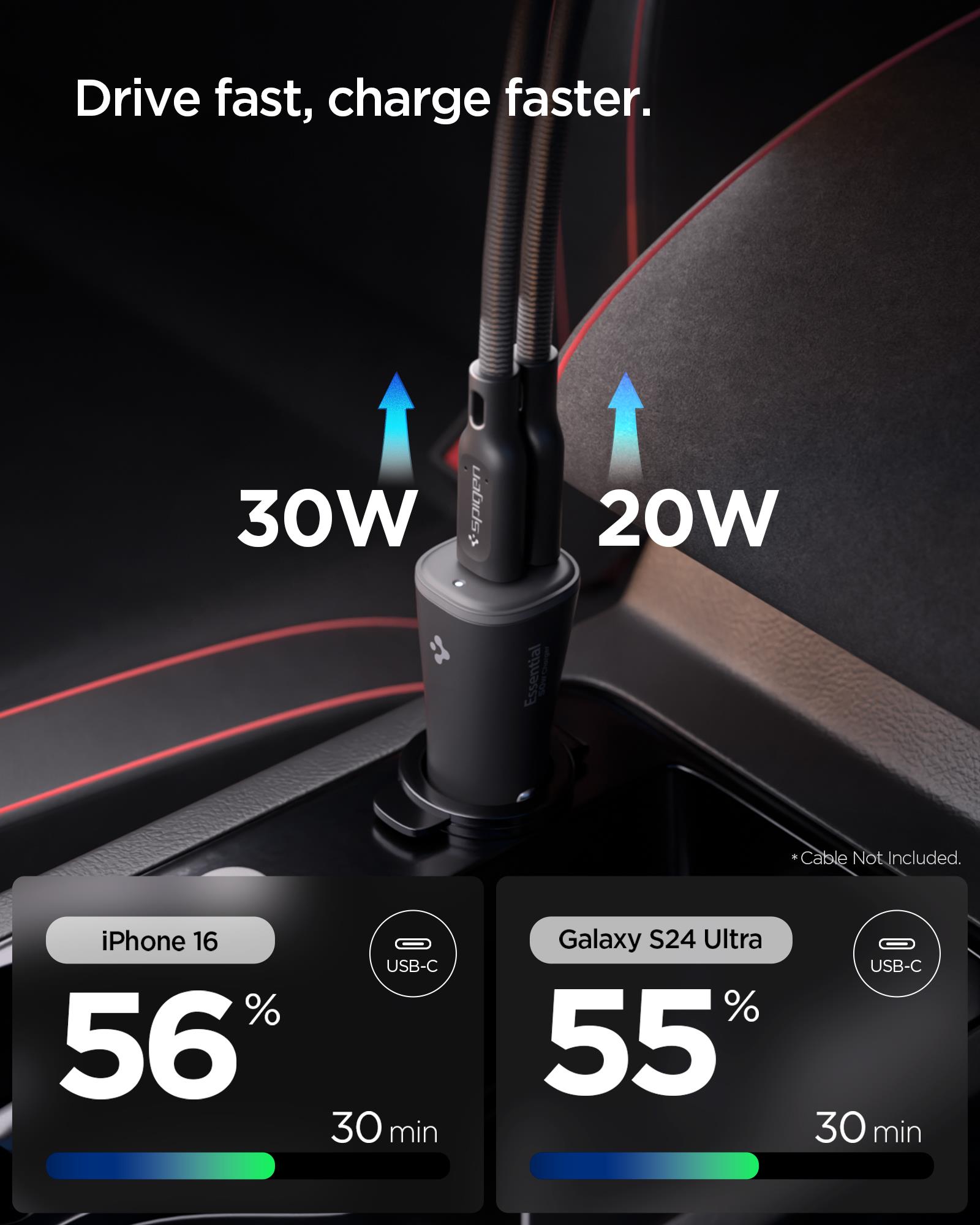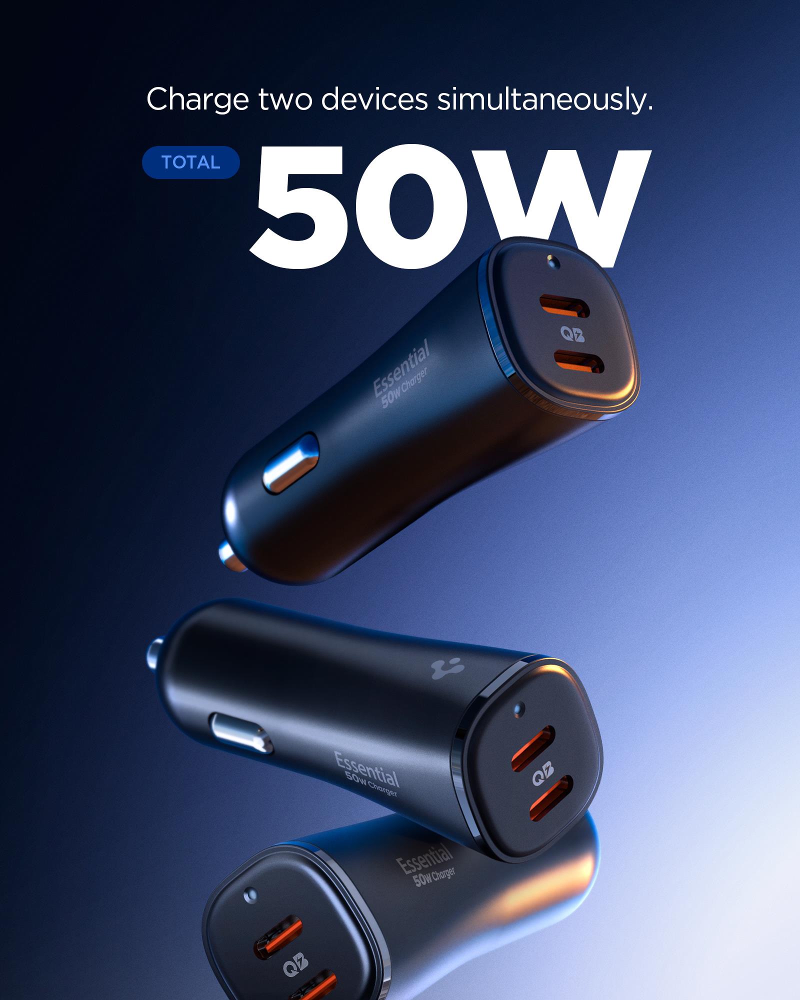 Essential 50W USB-C Car Charger Fast Charging