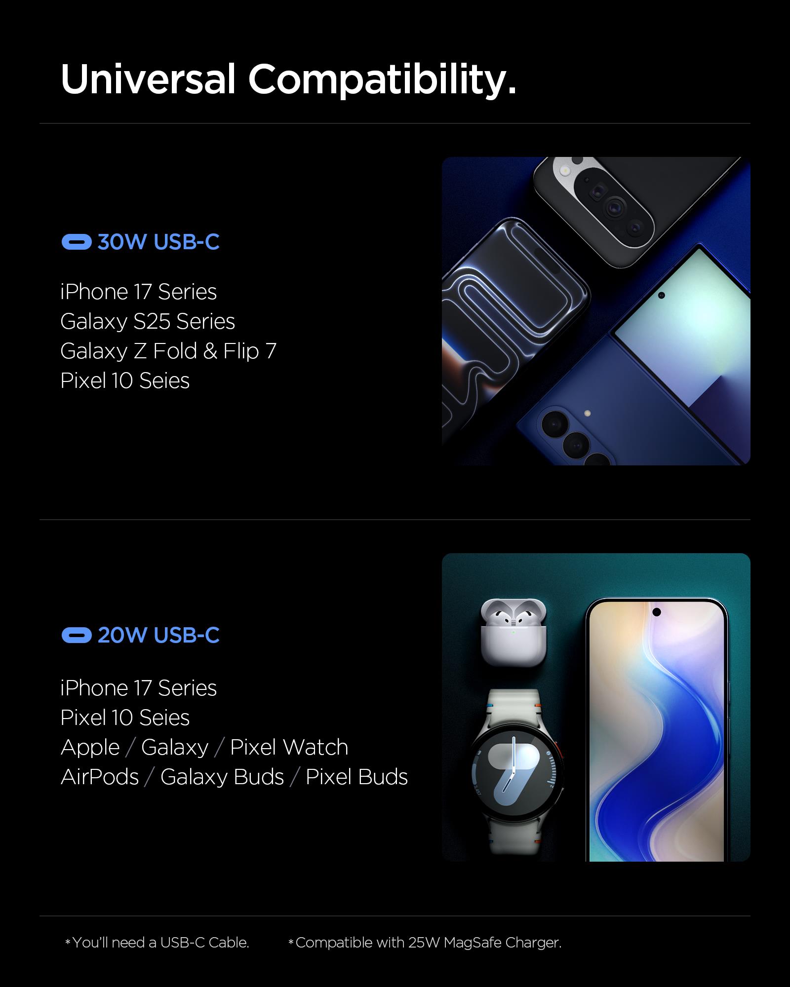 It allows you to quickly charge two mobile devices at the same time, delivering 30W to the first port and 20W to the second.