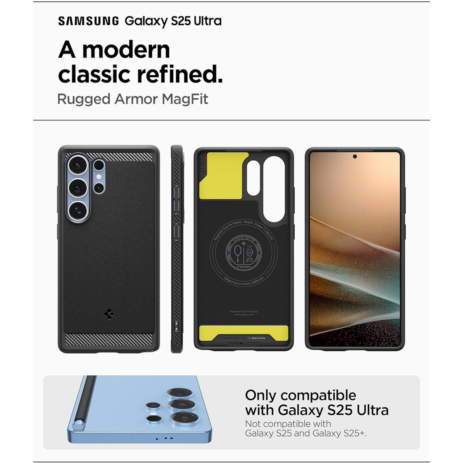 Spigen Galaxy S25 Ultra 5G Rugged Armor MagFit Case - Black MagFit - DROP-TESTED MILITARY GRADE - Ultimate Protection - Rugged Design with Matte Finish - Air Cushion Technology