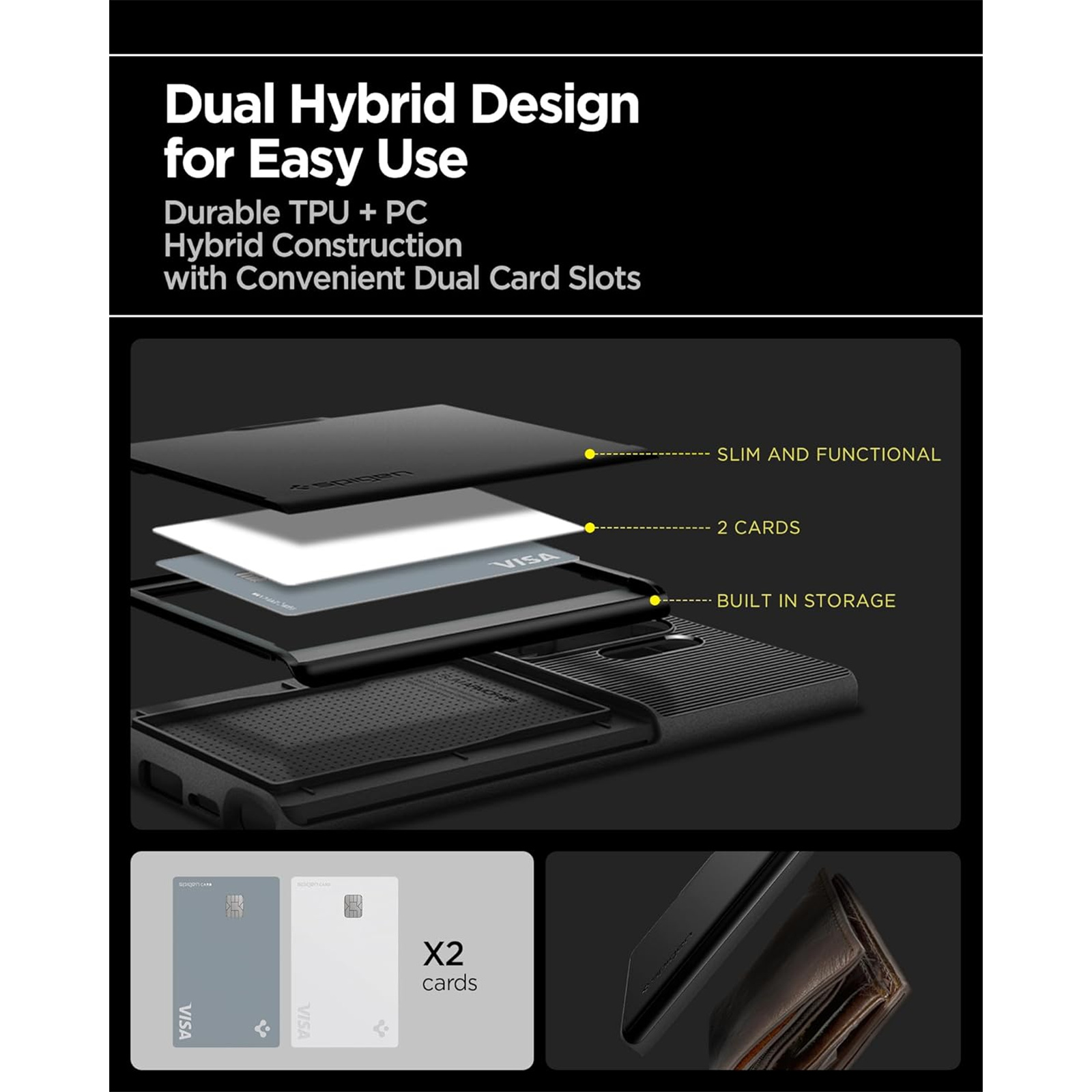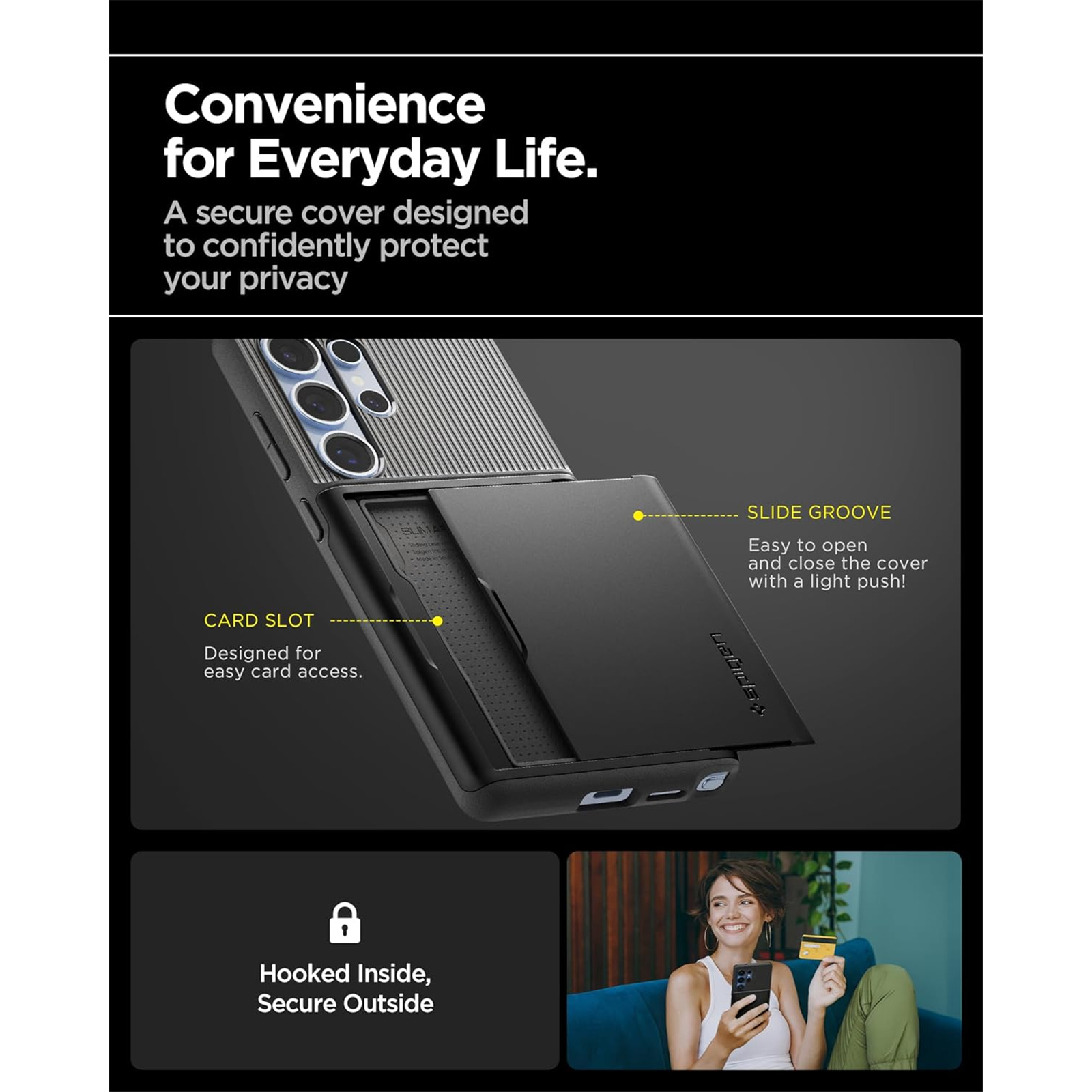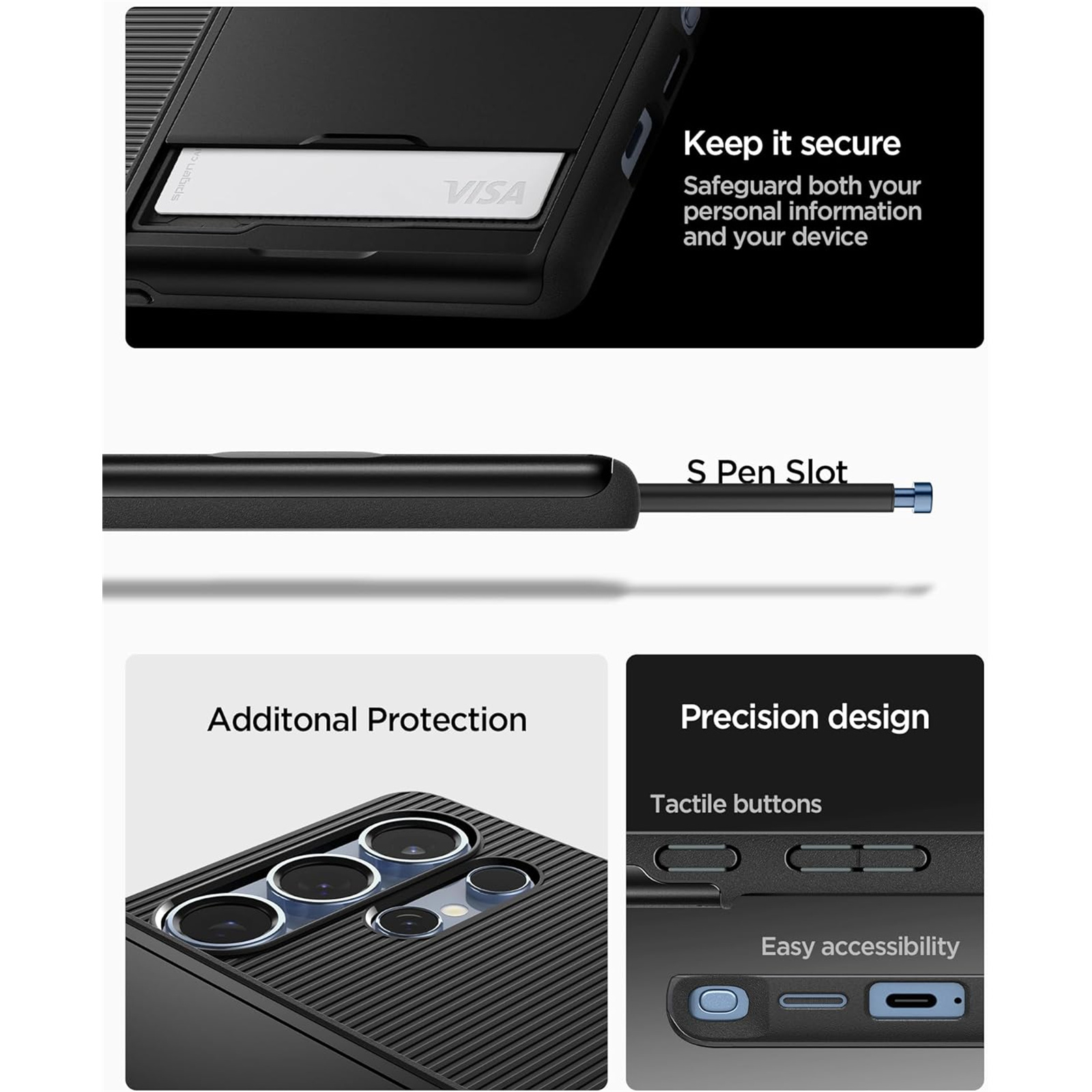 Spigen Galaxy S25 Ultra 5G Slim Armor CS Case - Black Slim - Dual Layer - Built in 2X Card Slot - Air-Cushion Technology (Certified Military-Grade Protection)