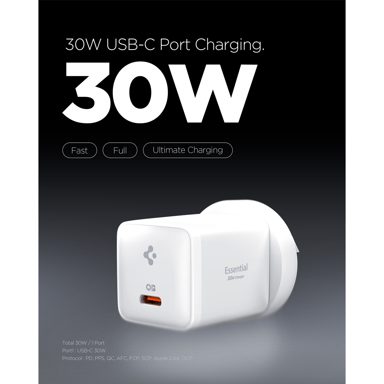 Product URL: https://www.pbtech.co.nz/product/MPPSGP09379/Spigen-Essential-30W-USB-C-PD-GaN-Fast-Charging-Wa?is-review=1