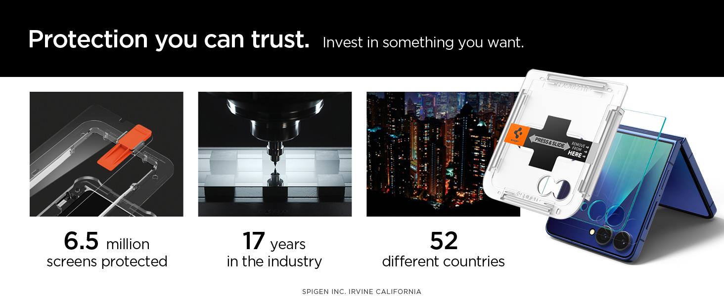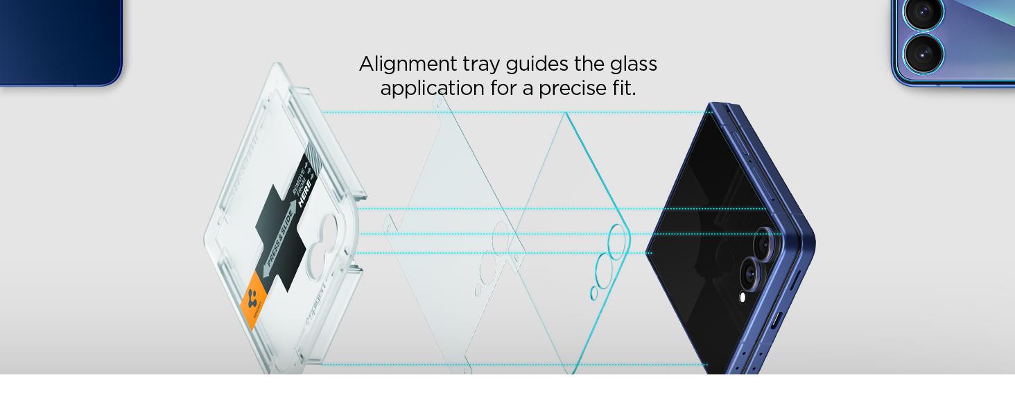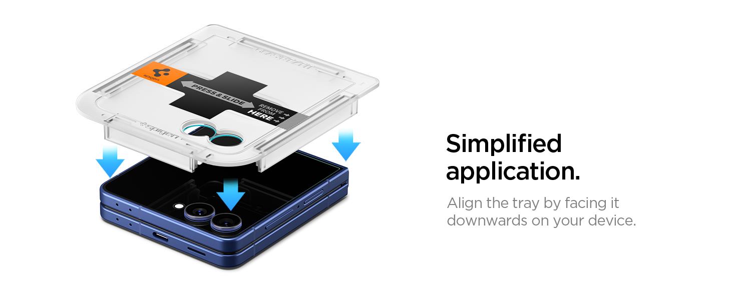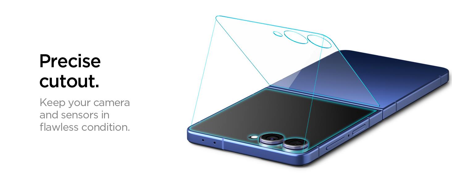 Spigen GLAStR EZ FIT Tempered Glass Screen Protector for the outer Front Cover Screen of Samsung Galaxy Z Flip7 comes with an innovative tray designed to eliminate the time wasted to achieve the greatest alignment. Simply place the tray over the phone, press the center & watch the glass adhere in place. Shield the screen with Premium Reinforced Tempered Glass with 9H hardness, absolute Clarity, NO LOSS in Touch Screen Sensitivity (Feels like touching the original screen).