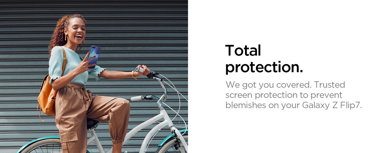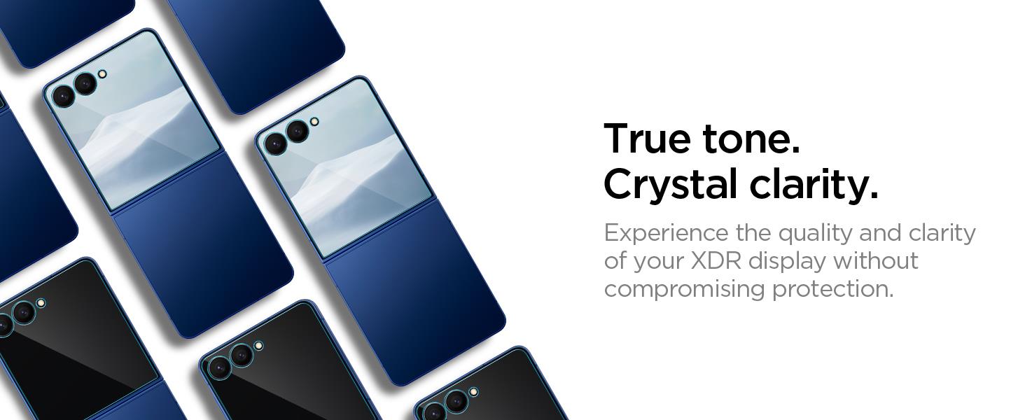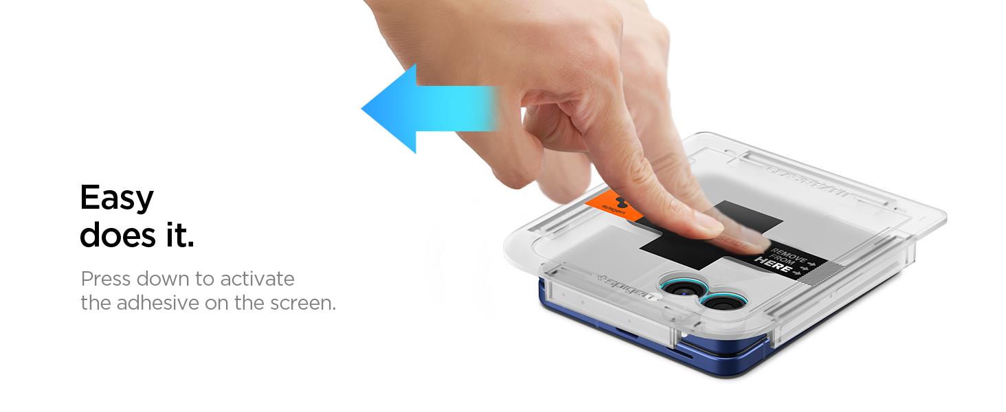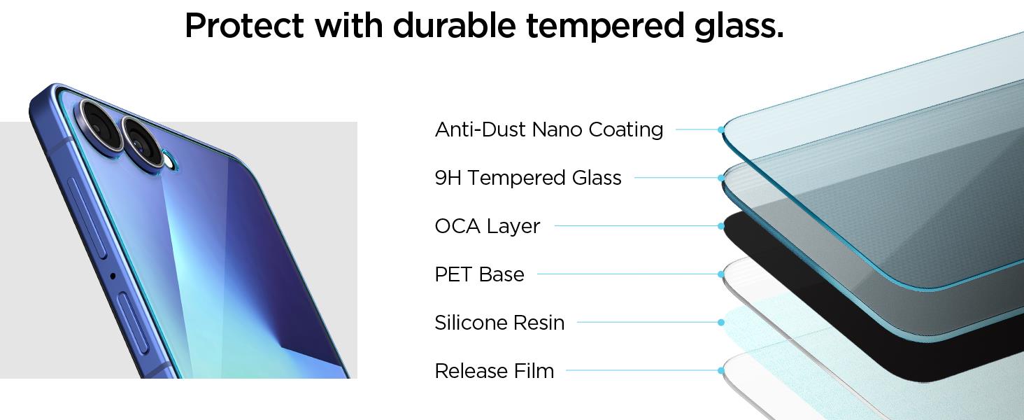 Spigen GLAStR EZ FIT Tempered Glass Screen Protector for the outer Front Cover Screen of Samsung Galaxy Z Flip7 comes with an innovative tray designed to eliminate the time wasted to achieve the greatest alignment. Simply place the tray over the phone, press the center & watch the glass adhere in place. Shield the screen with Premium Reinforced Tempered Glass with 9H hardness, absolute Clarity, NO LOSS in Touch Screen Sensitivity (Feels like touching the original screen).
