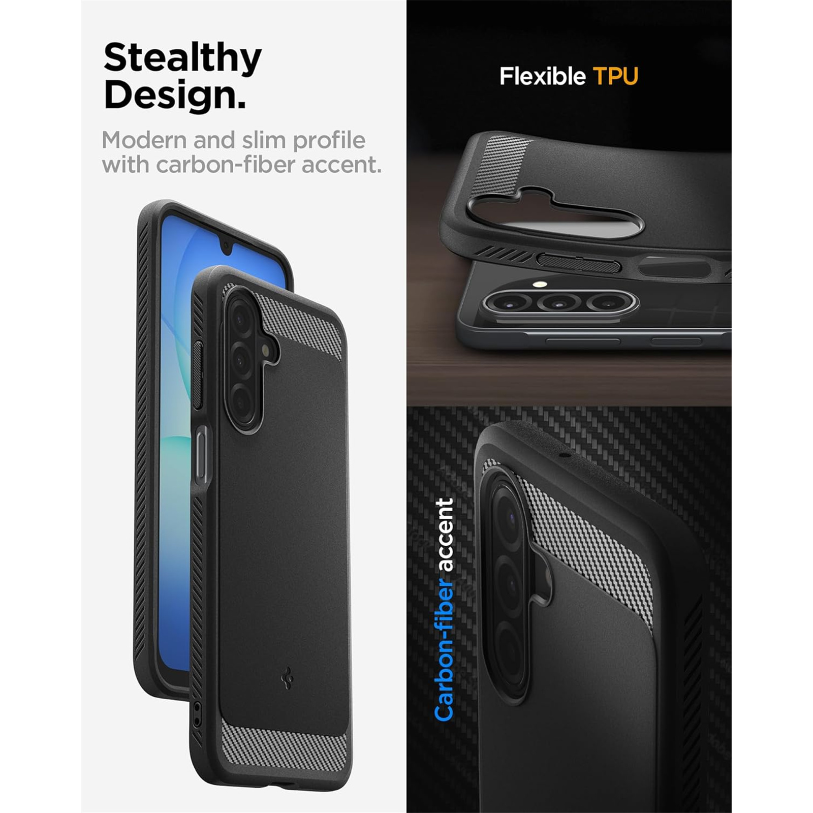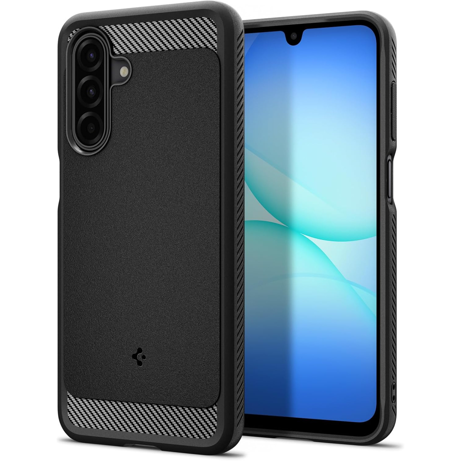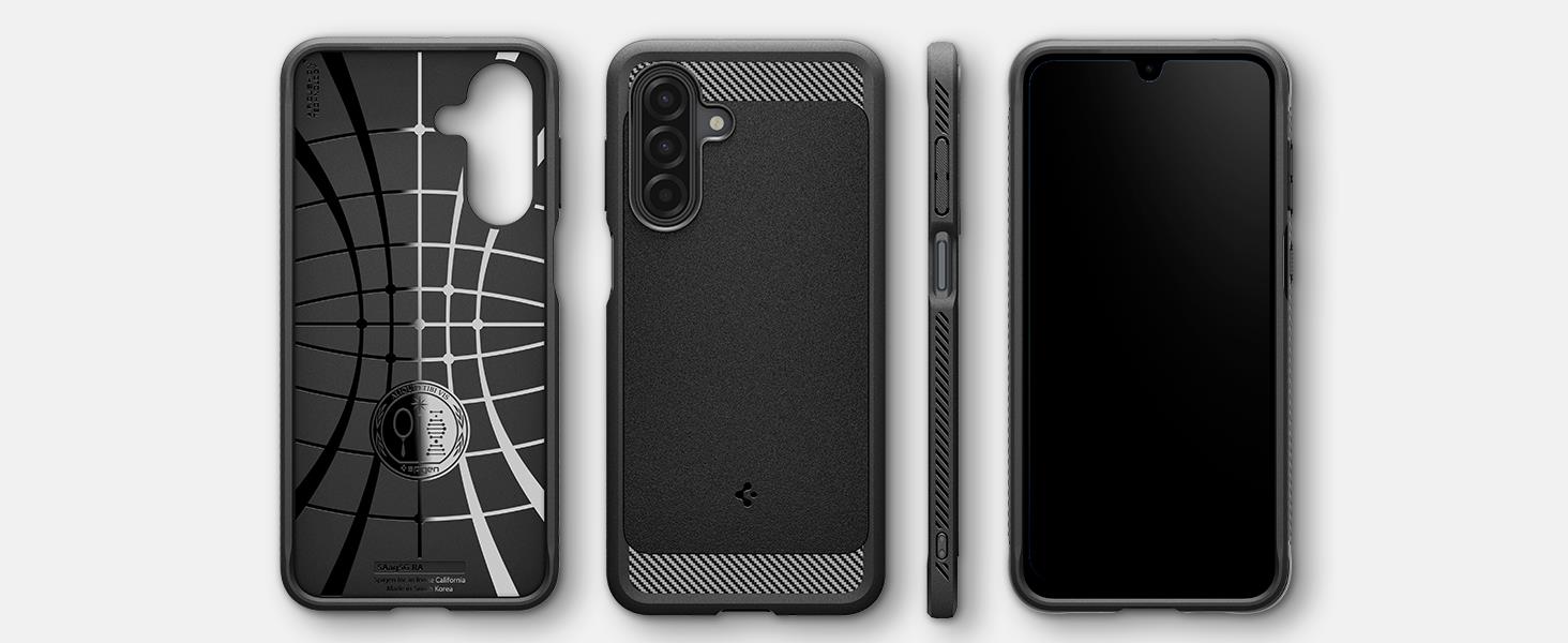 Spigen Galaxy A17/A17 5G (2025) Rugged Armor Case - Matte Black Durable Mechanical Design - Air Cushion Technology (Military-Grade Protection) - Carbon Fiber Design