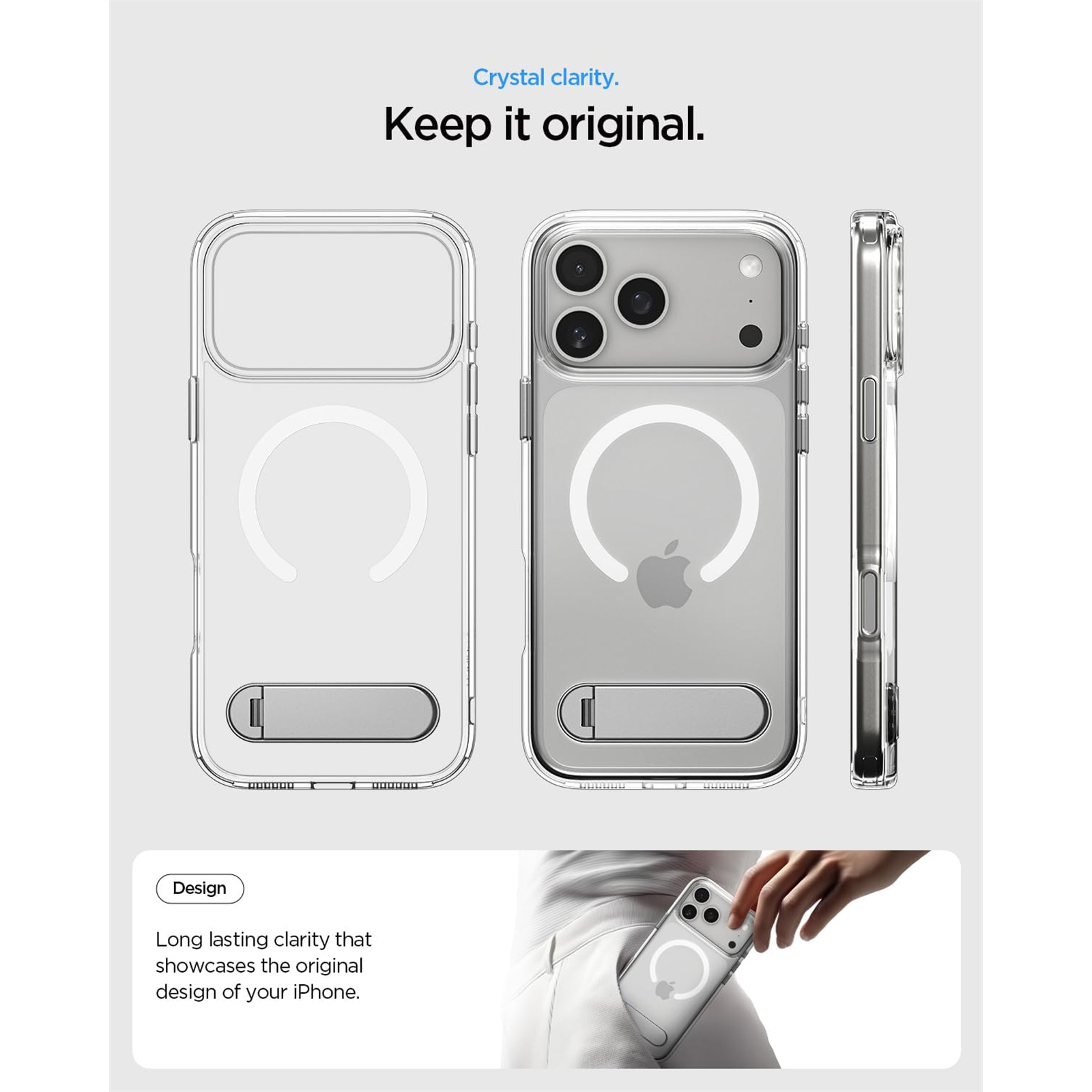 Spigen iPhone 17 Pro (6.3") Ultra Hybrid S MagFit Case - Crystal Clear - Built in Stand, Compatible with Apple Magsafe Charging & Magsafe Accessories - Certified Military-Grade Protection - Clear Durable Back Panel + TP
