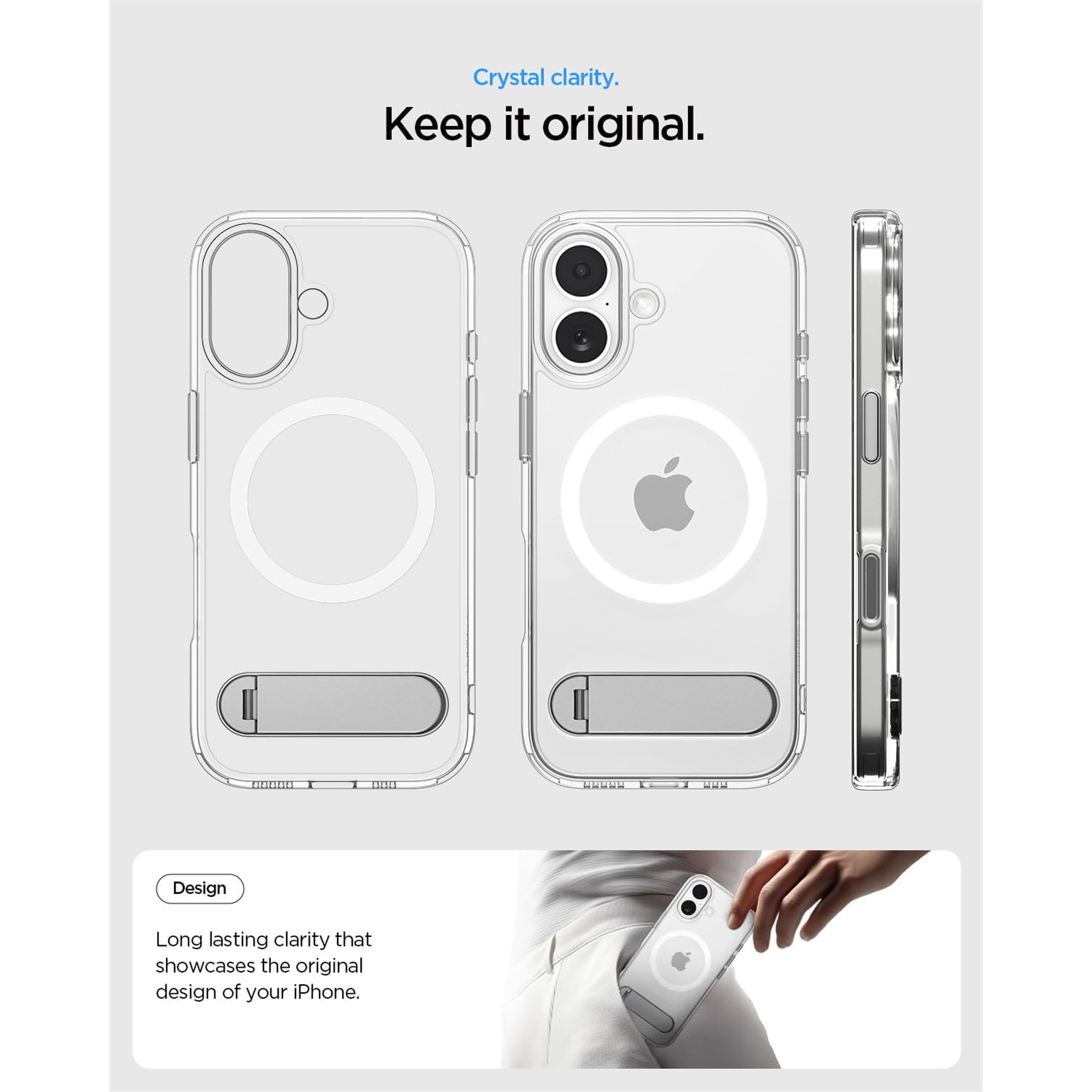 Spigen iPhone 17 (6.3") Ultra Hybrid S MagFit Case - Crystal Clear - Built in Stand, Compatible with Apple Magsafe Charging & Magsafe Accessories - Certified Military-Grade Protection - Clear Durable Back Panel + TP