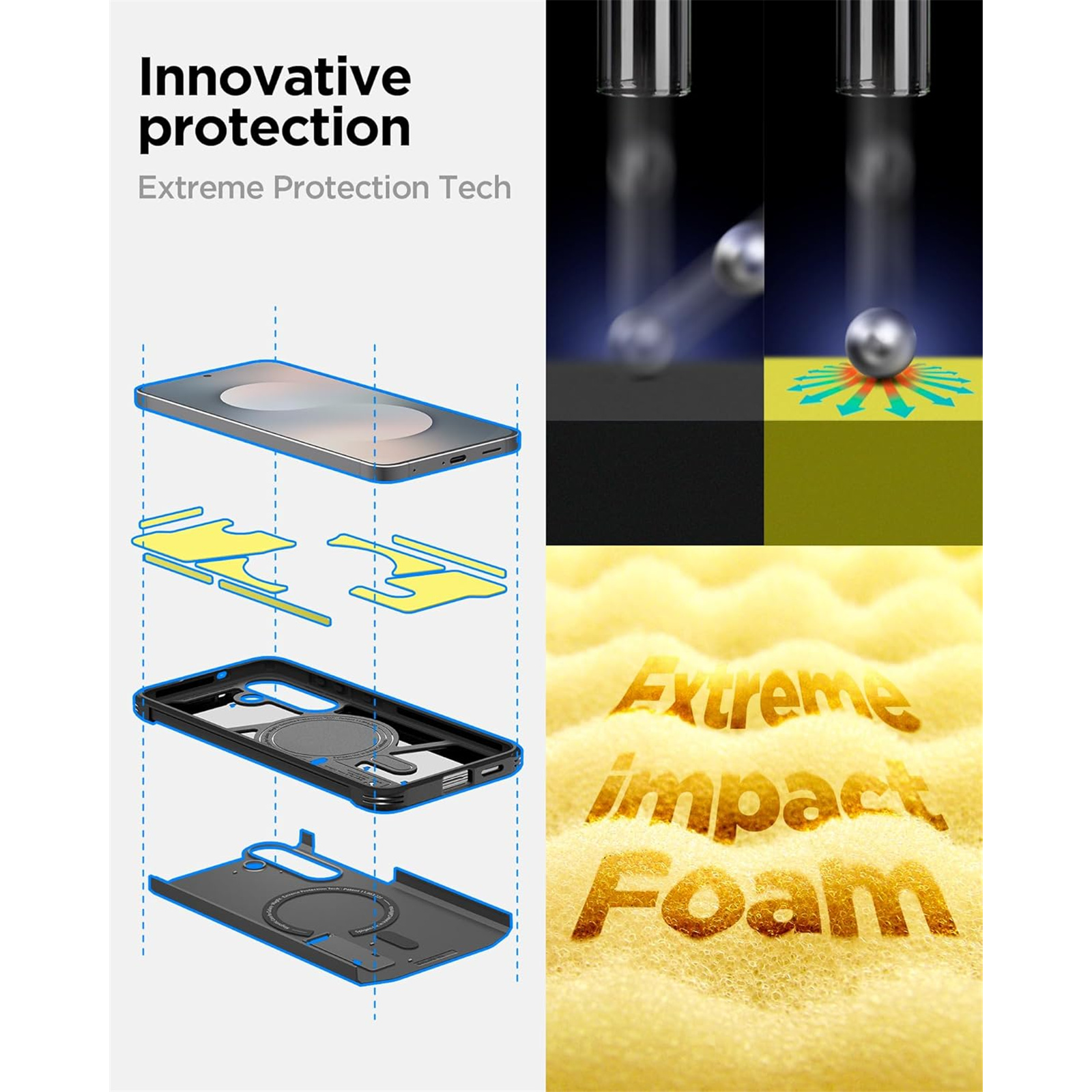 Spigen Galaxy S25 FE 5G Tough Armor MagFit Case - Black Drop-Tested Military Grade - MagSafe Compatible - Heavy Duty - 3-Layer Extreme Protection - Air Cushion Technology - Dual Layer Protection