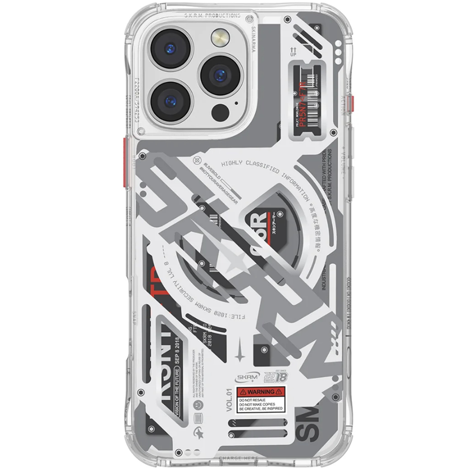 Mech-tech reinvented. Semi-clear protective case featuring EKHO's unique layered machine-esque aesthetic that hides a magnetic ring module designed for wireless charging. Customisable with interchangeable corner bumper lanyard loops to sling it on.