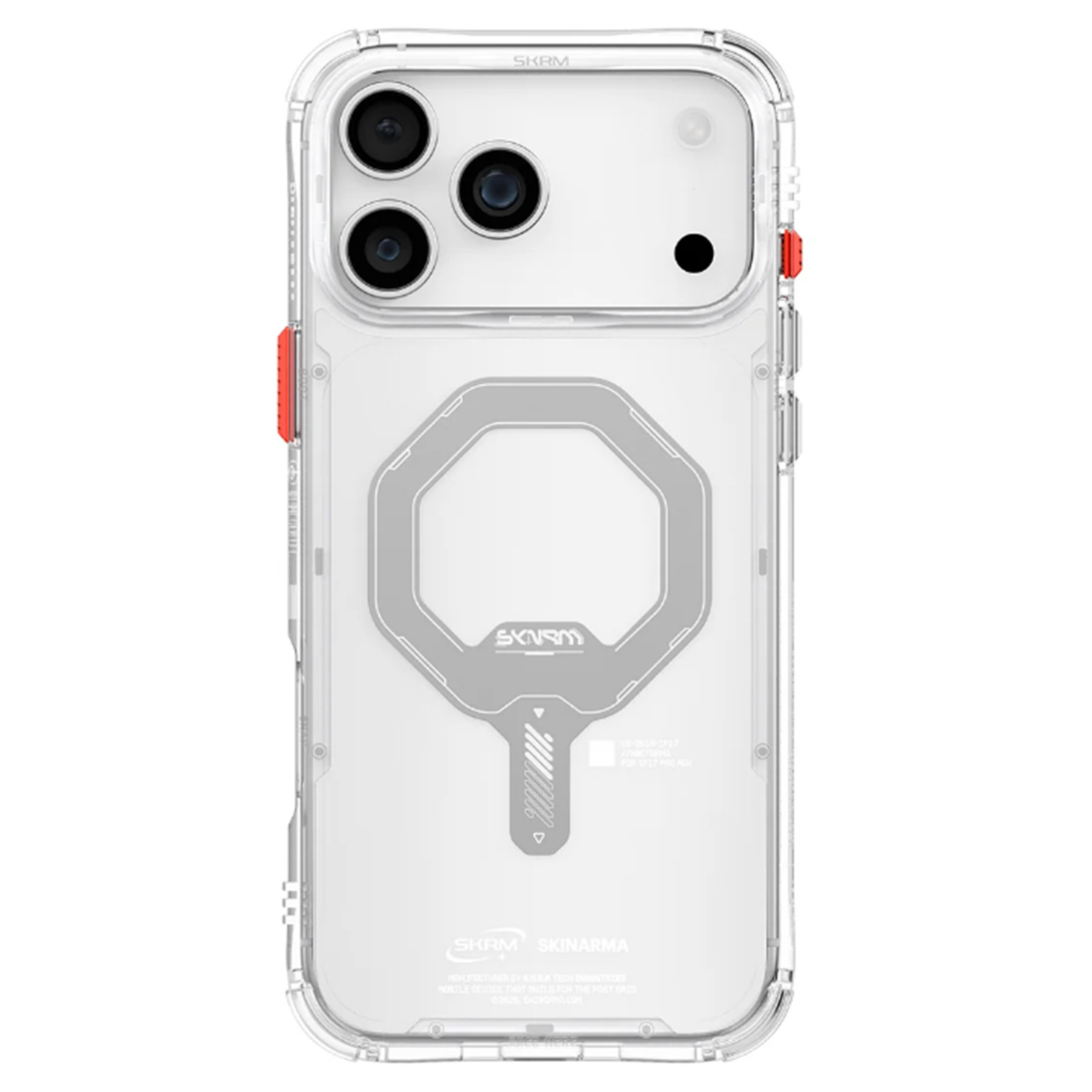 skinarma iPhone 17 Pro Max (6.9") 2025 Saido Mag-Charge Case - Clear , Compatible with Magnetic Charging- 360 Full Protection- 2H Scratch Resistance- Accessories Pack Includes Extra Set of Transparent Button & Frost Red Lanyard Loops