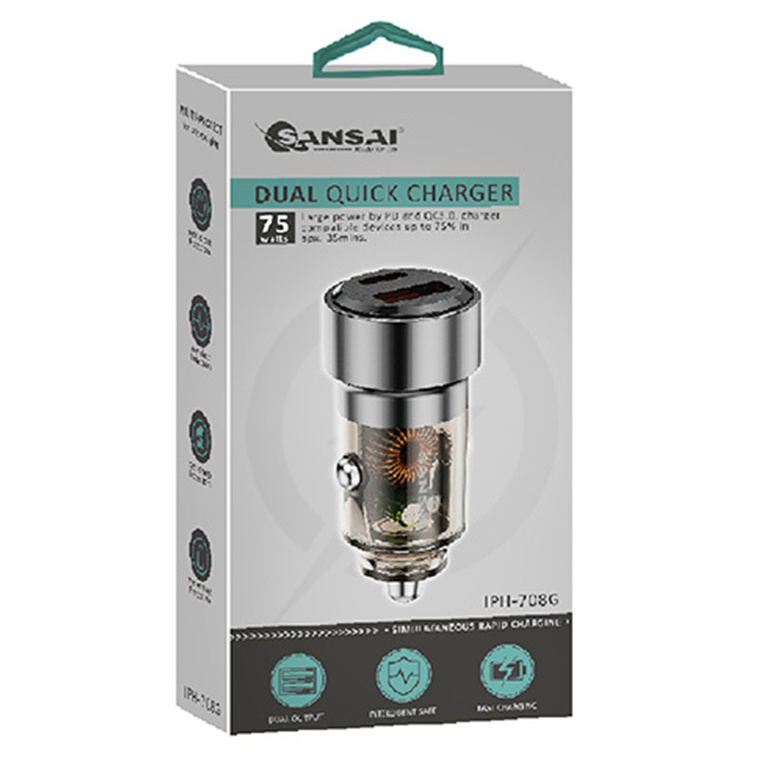 Sansai IPH-708G 75W USB A + USB-C Quick Car Charger