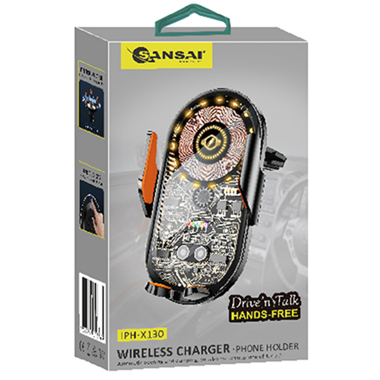 Sansai IPH-X130 Wireless Car Charger & Phone Holder (Automatic Clamping) -Suitable for smartphone 4.7-7.2" - Made of Transparent Material