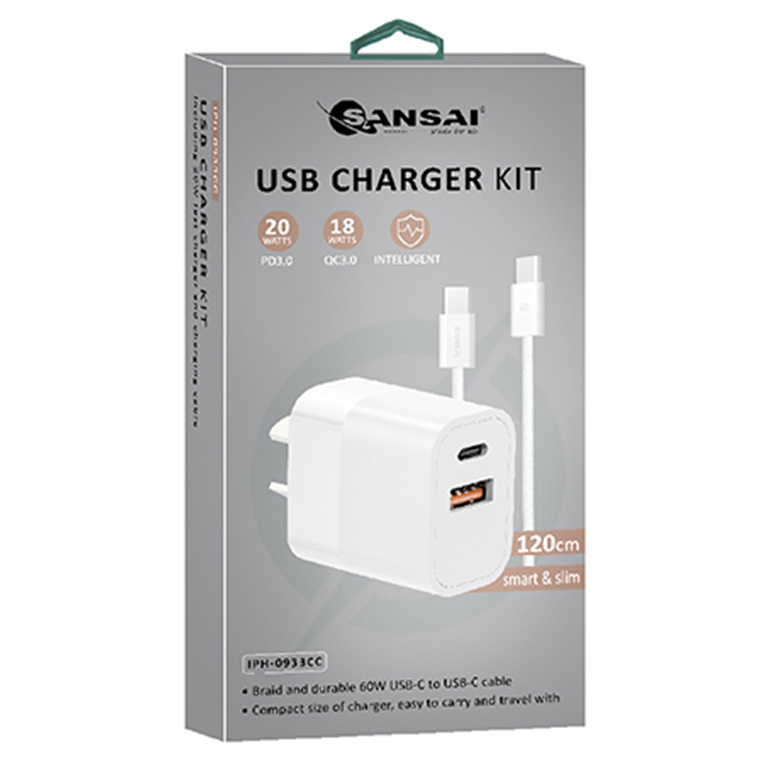 Sansai IPH-0933CC PD 20W Charger + C to C CABLE