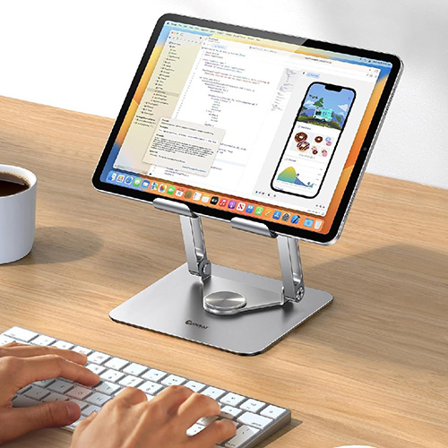 Enjoy ultimate flexibility with a 360° rotatable base that allows you to switch seamlessly between portrait and landscape modes. The 180° adjustable dual-arm lets you easily find the perfect viewing angle for any task or activity. With this multi-angle adjustment, you can customize your setup for comfort, productivity, or shared viewing, optimizing your workspace or leisure time in seconds.