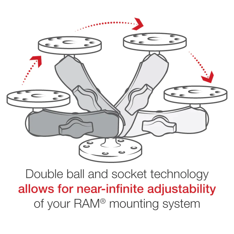 The patented RAM rubber ball system dampens shock and vibration to protect your equipment in motion. Nearly infinite adjustment lets you dial in the exact viewing or usage angle for your needs. With a standard weight capacity of 2 lbs and heavy-duty rating of 1 lb, it meets the demands of demanding environments.