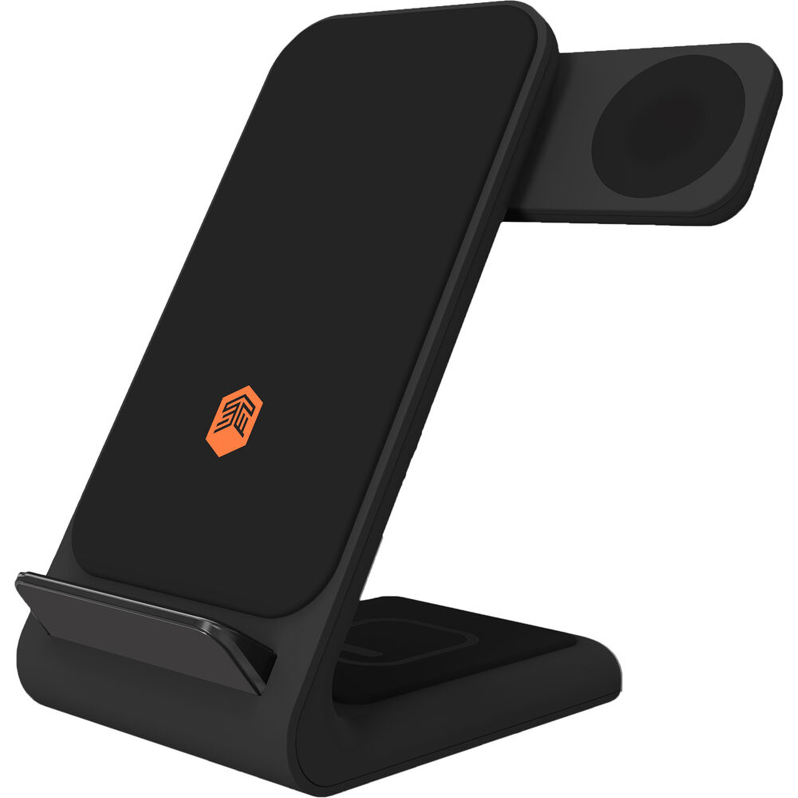 STM STM-931-323Z-02 ChargeTree Swing - - 3-in-1 Wireless Charging Station for iPhone/Samsung/Android (15W/7.5W), AirPods (5W), Apple Watch (3W) - Qi Certified Charging Stand - Black