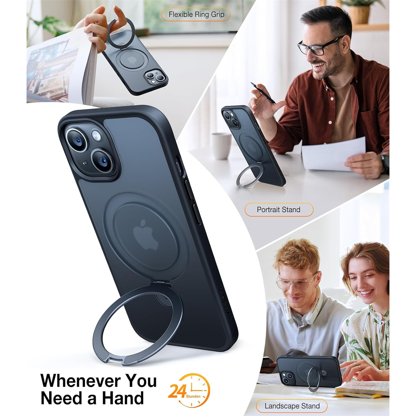 Torras iPhone 15 (6.1") Ostand Matte Case - Black MagSafe Compatible - Horizontal / Vertical & Flexible Ostand
