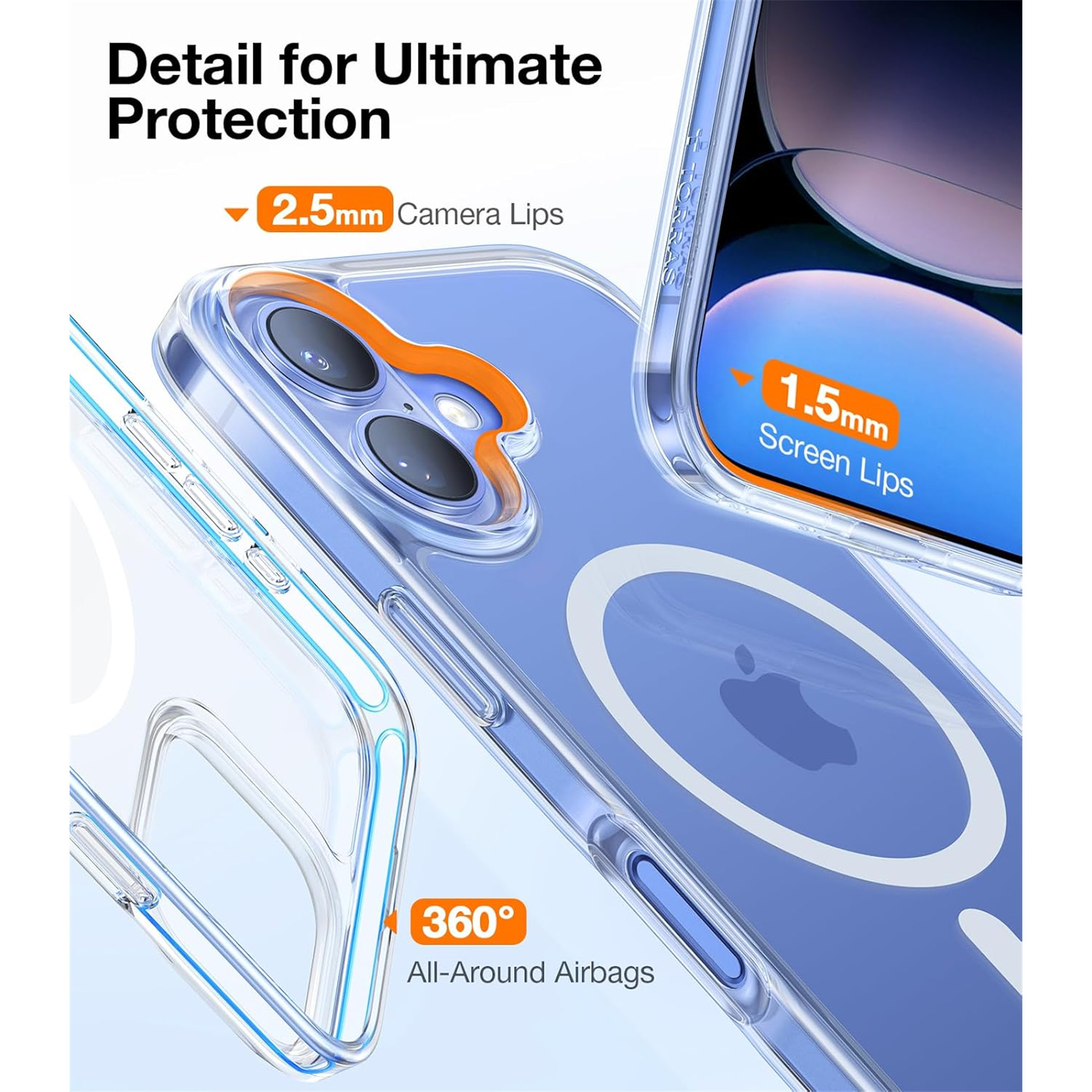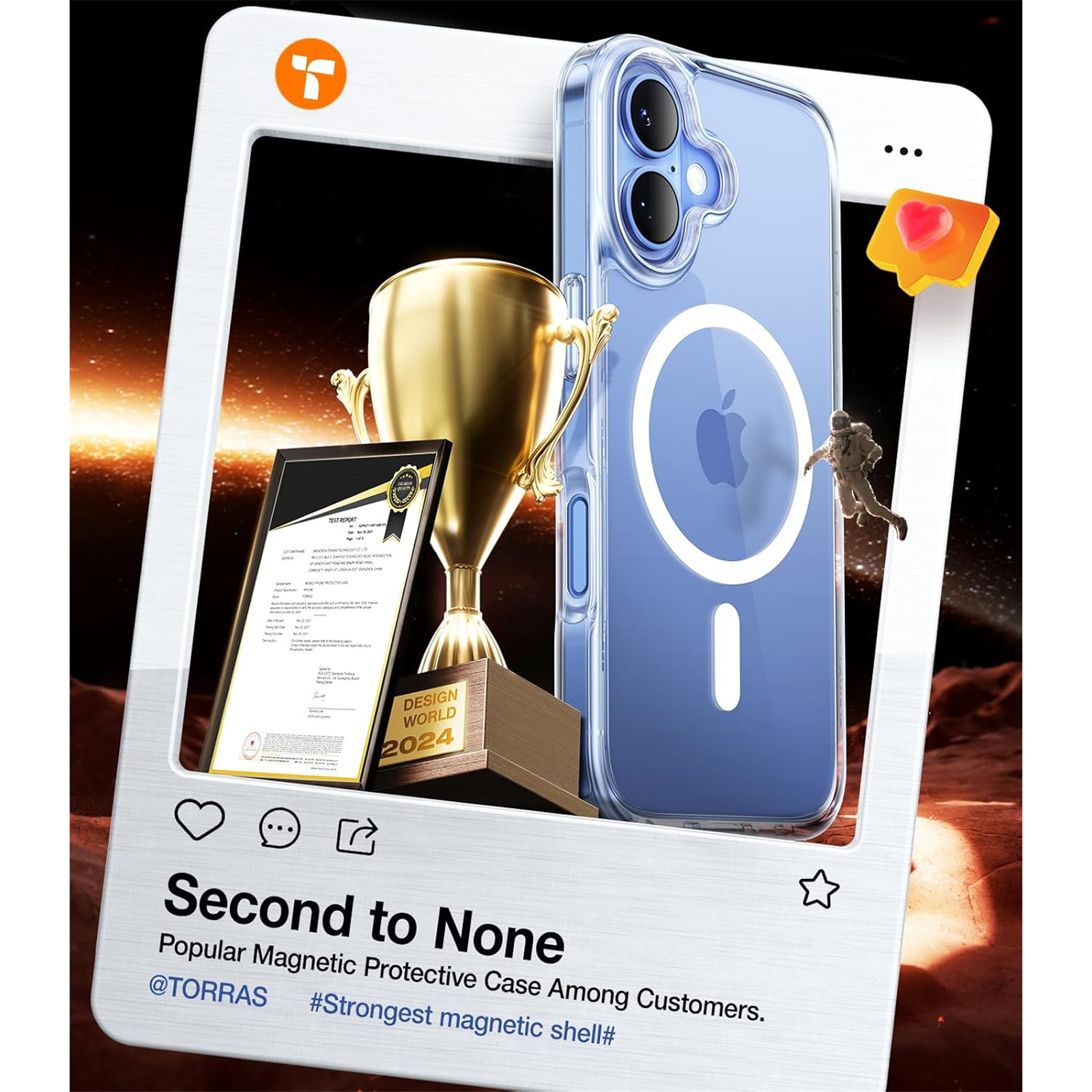 Torras iPhone 16 (6.1") Diamond-Mag Case - Clear MagSafe Compatible - Diamond Clear