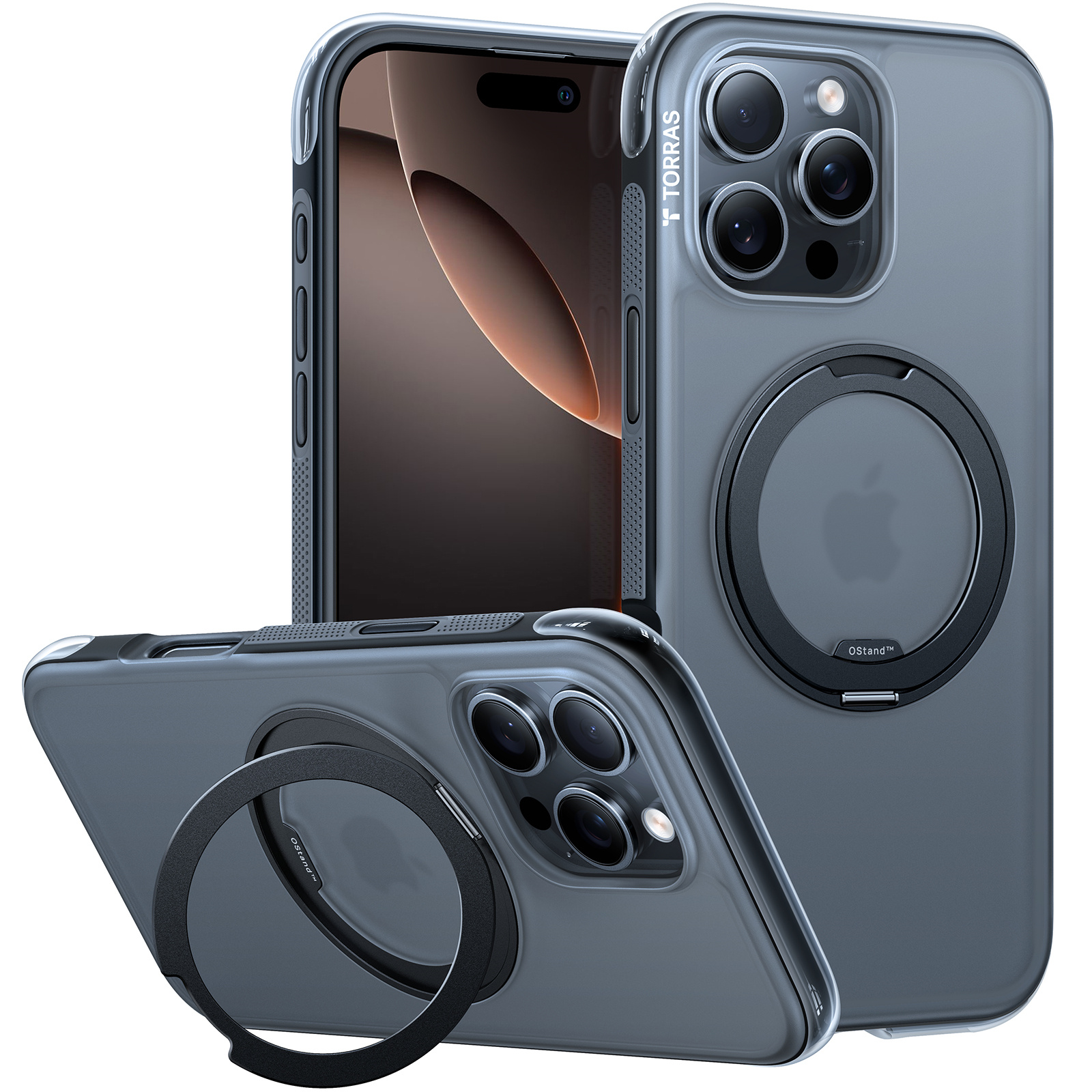 Torras iPhone 16 Pro Max (6.9") Ostand R Air Case - Black MagSafe Compatible, Air Cushions Design, Slip-Resistant, 360 Spin