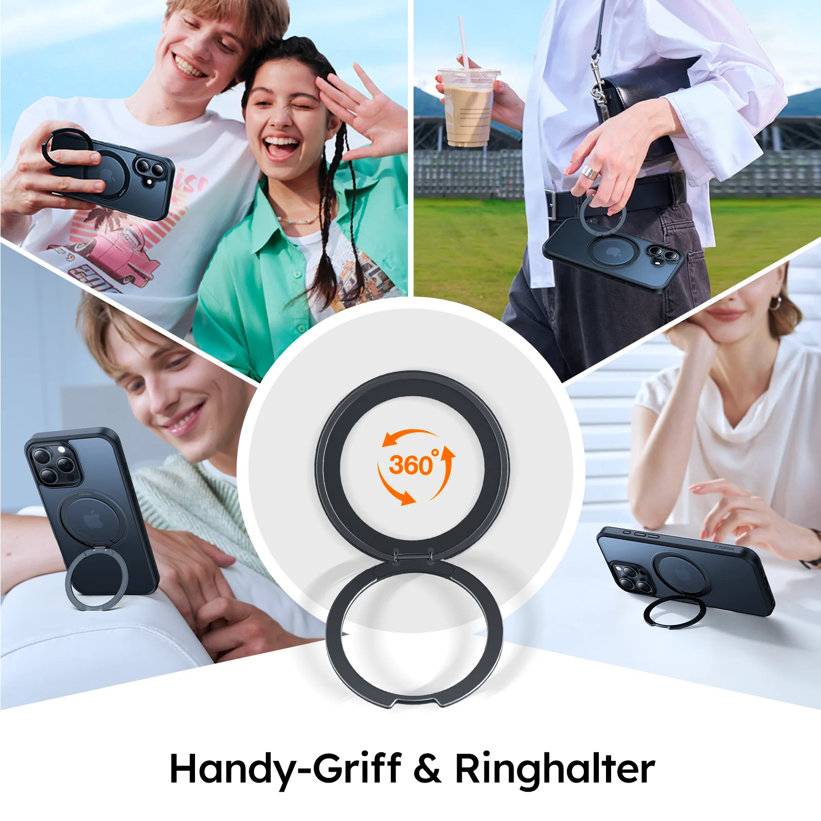 Torras OmniRing Magnetic Phone Grip Holder Kickstand - Black Compatible with iPhone 16/15/14/13/12...