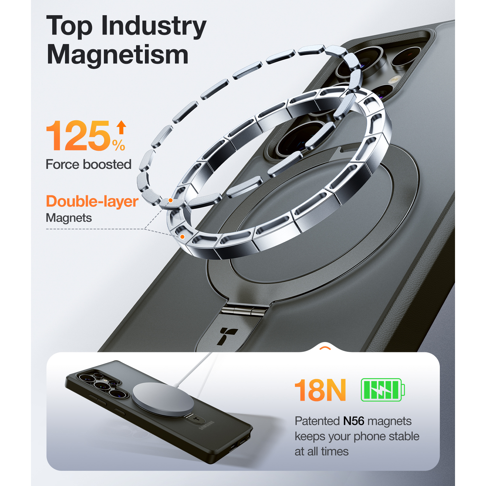 Torras Galaxy S25 Ultra 5G Ostand Matte Case - Black All in One: Magnetic / Stand / Ring Holder - Horizontal / Vertical & Felexible Ostand