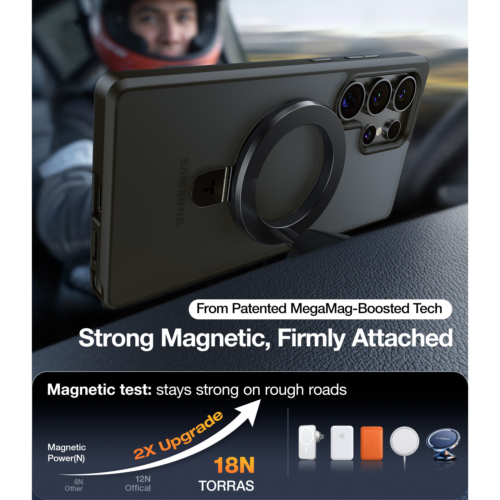 Torras OmniRing Magnetic Phone Grip Holder Kickstand - Black Compatible with iPhone 16/15/14/13/12...