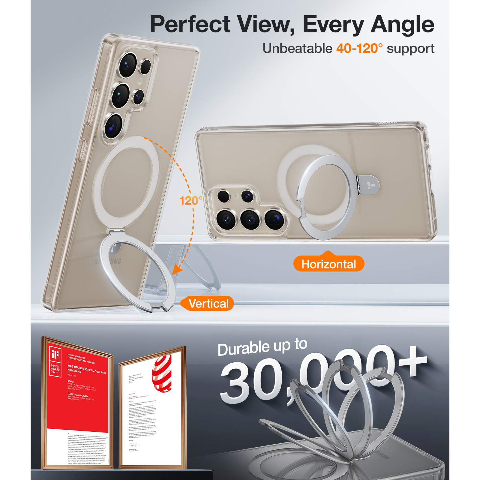 Torras Galaxy S25 Ultra 5G Ostand Case - Clear MagSafe Compatible - Horizontal / Vertical & Felexible Ostand