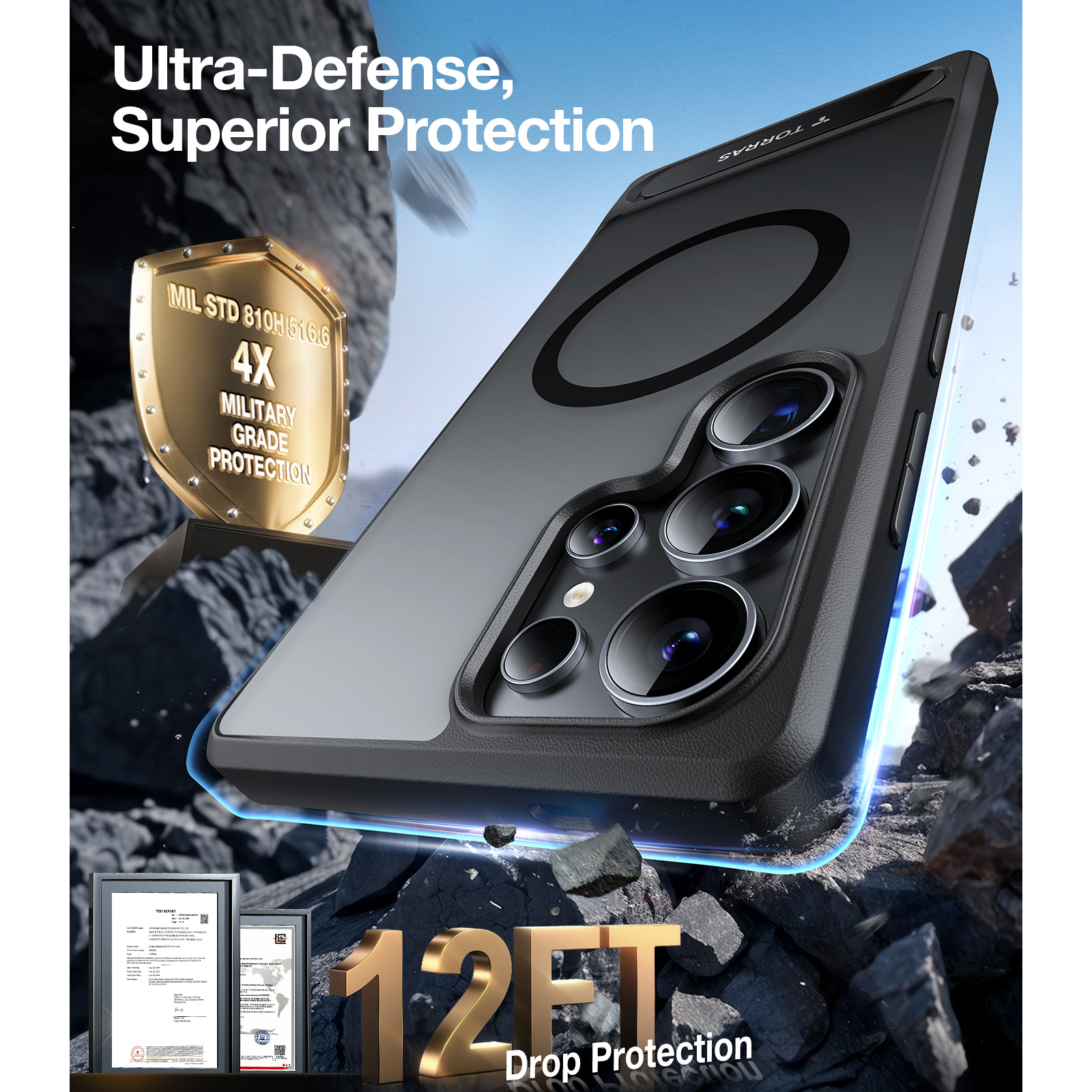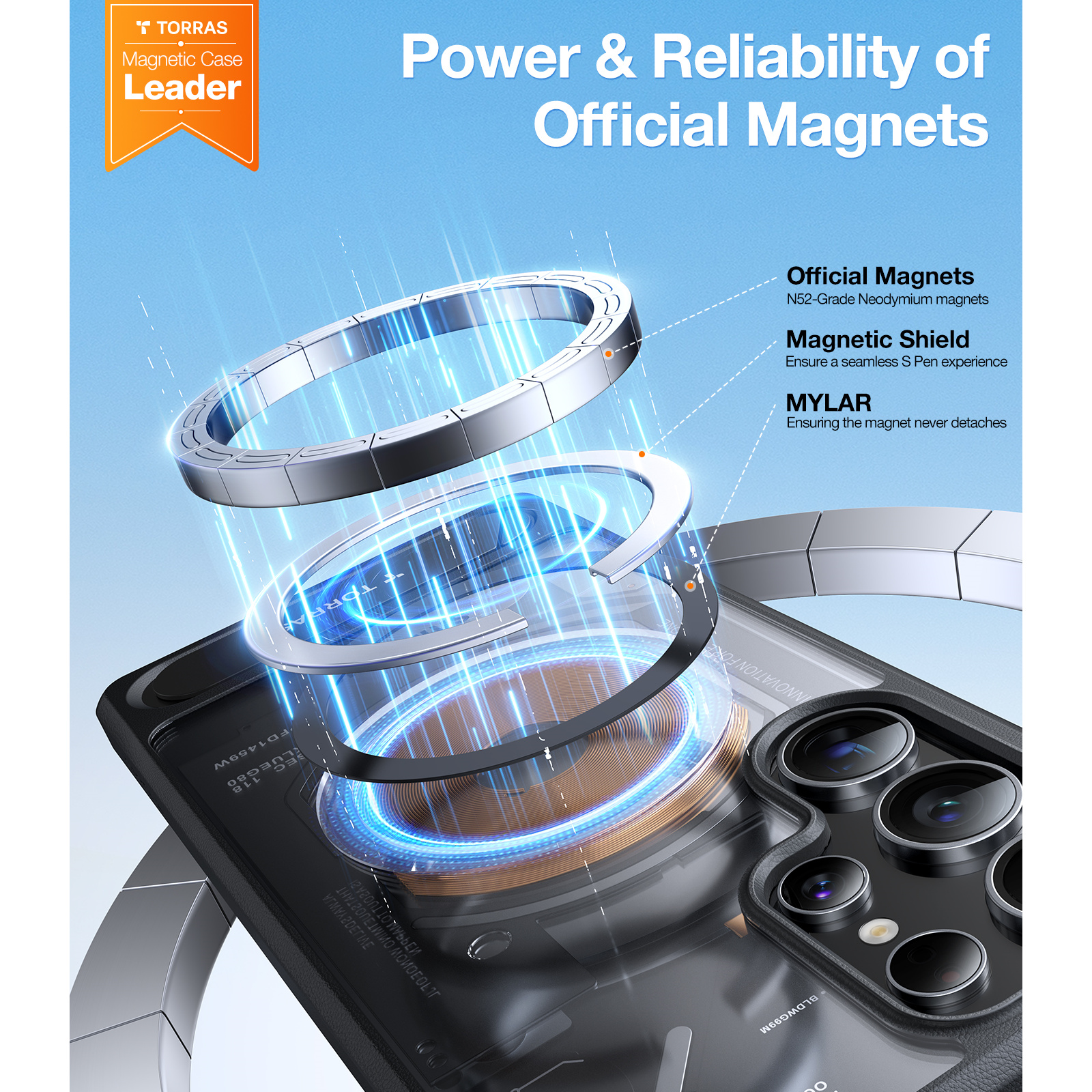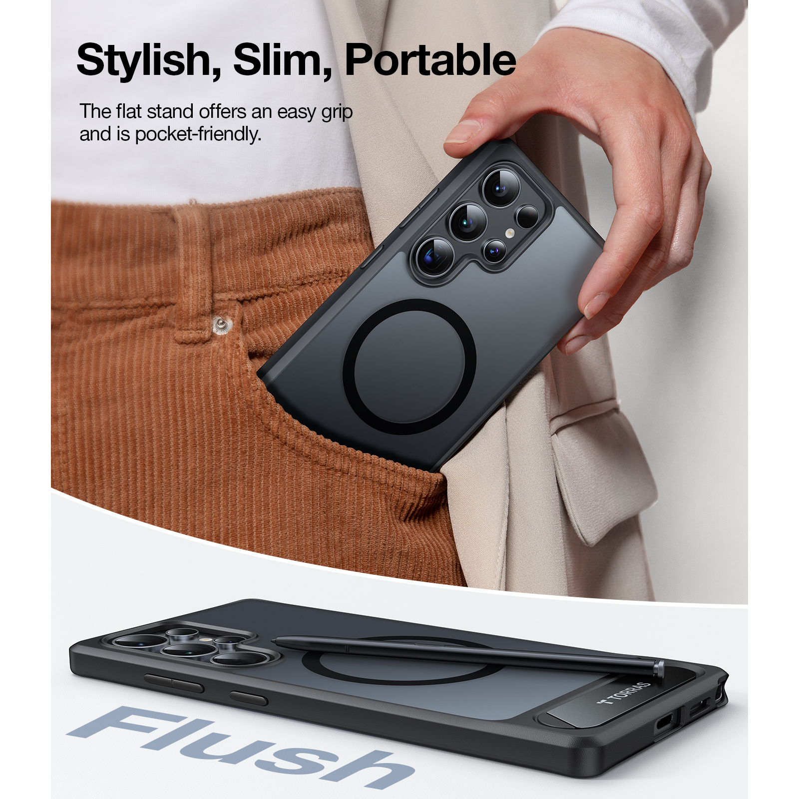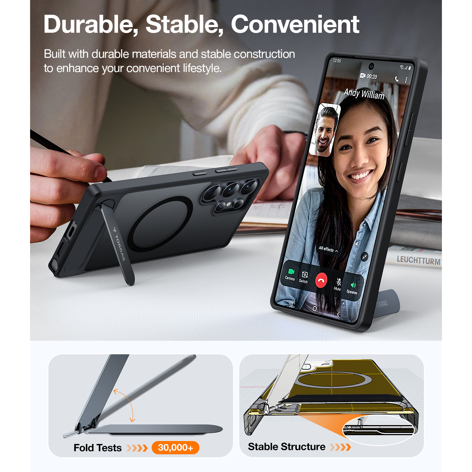 Torras Galaxy S25 Ultra 5G Pstand Case - Black MagSafe Compatible - Built-in Versatile Seamless Stand