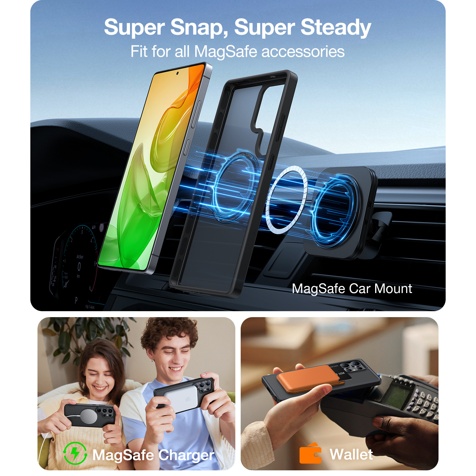 Torras Galaxy S25 Ultra 5G Guardian Magnetic Case - Black MagSafe Compatible - Translucent Slim