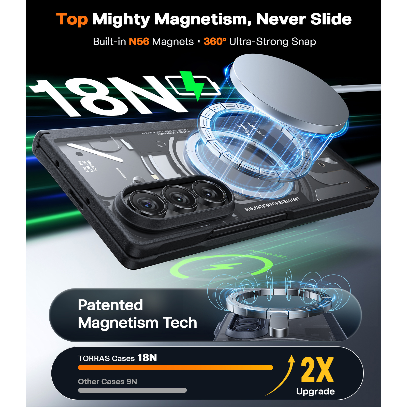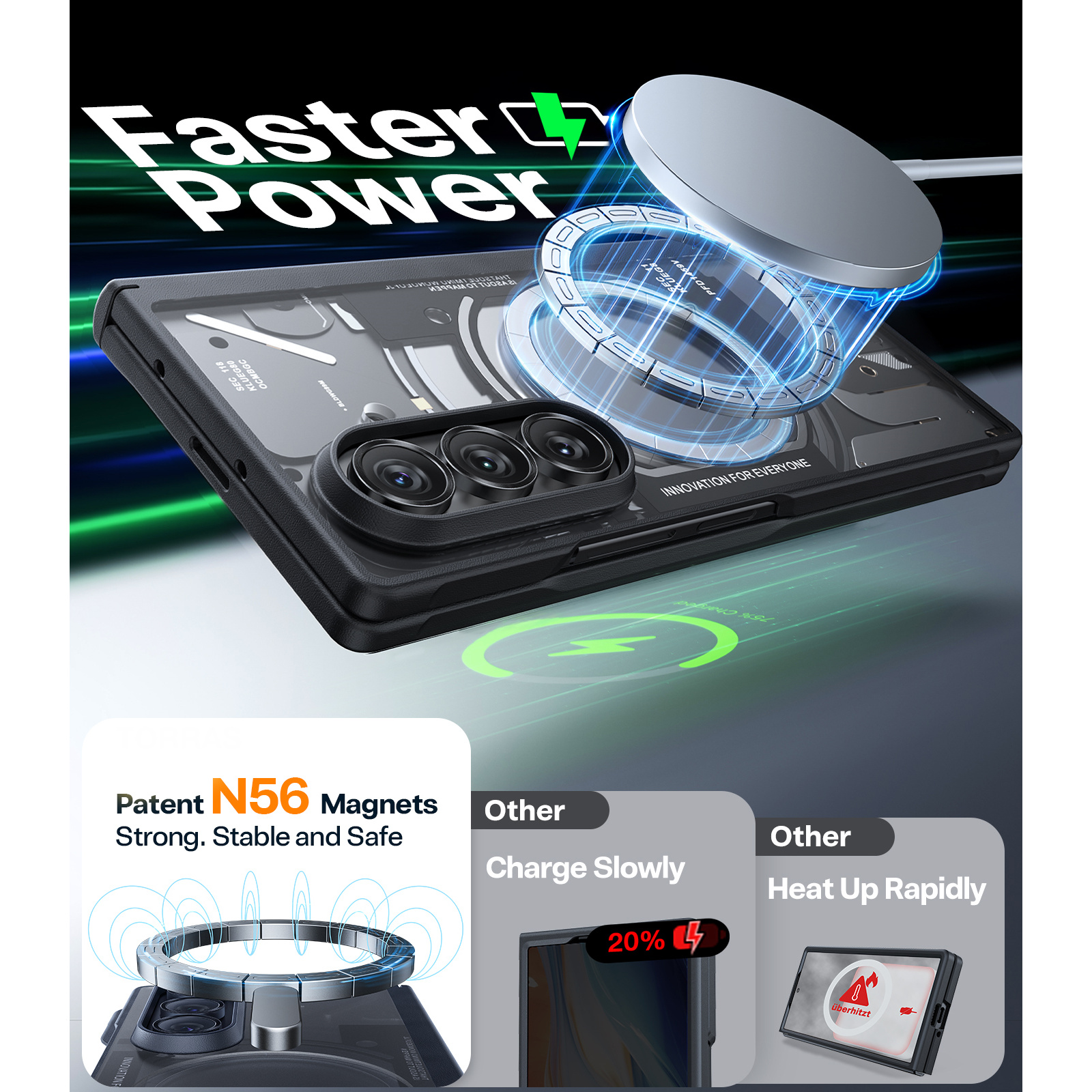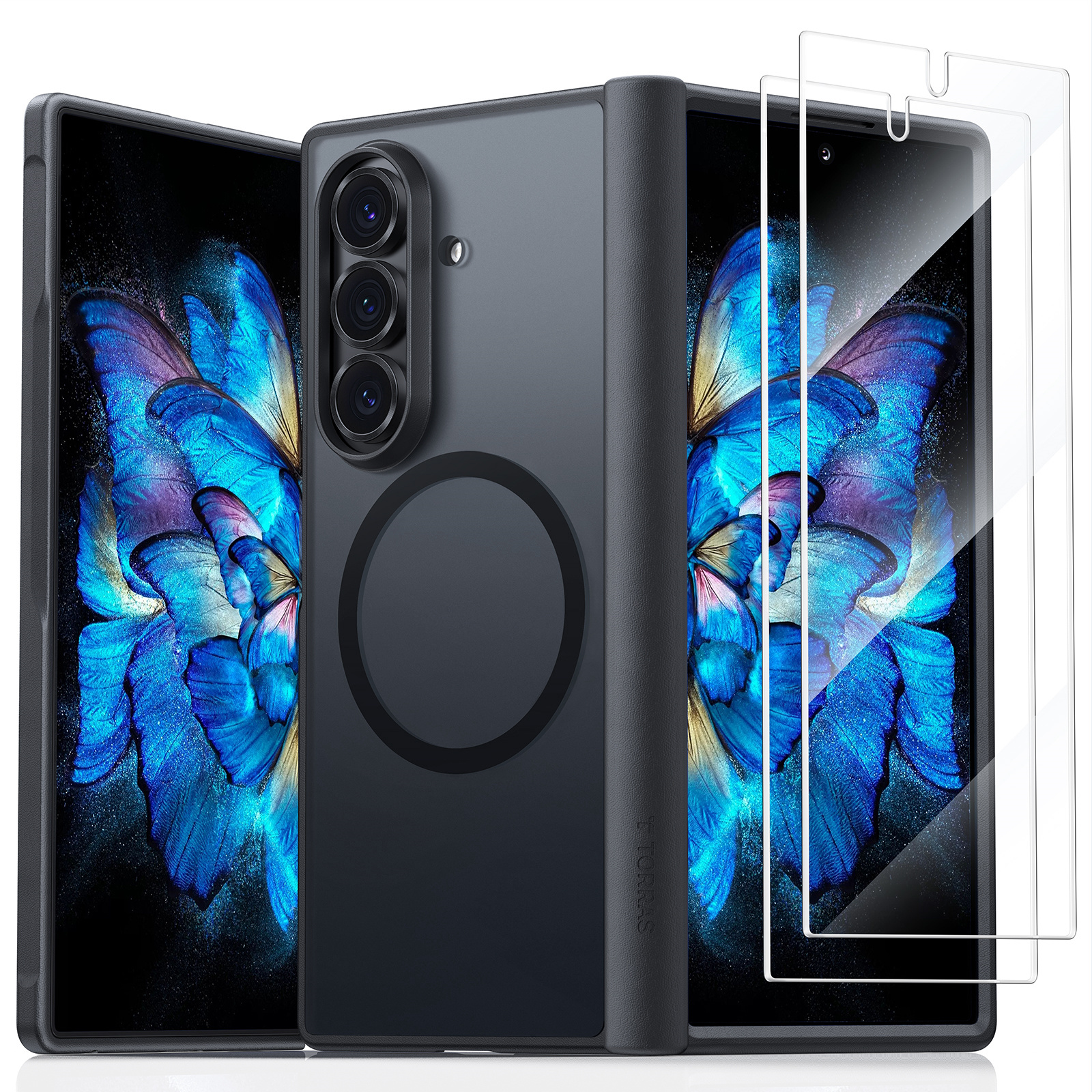 Torras Galaxy Z Fold7 Guardian Magnetic Case - Black, (Includes 2x Front Glass Screen Protectors), Translucent Slim, Compatible with Magsafe, Military-Grade Protection