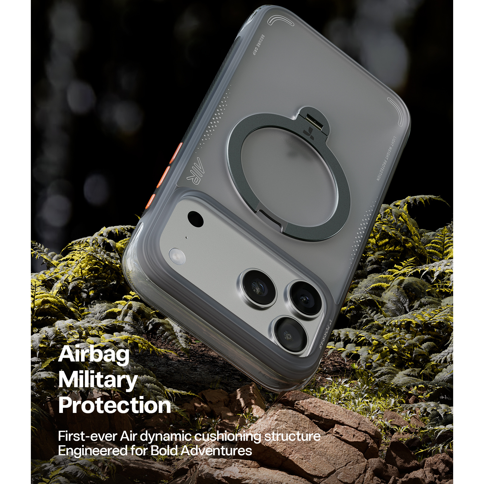 Full Camera Control Button Coverage - Upgraded Airbag Technology - Dot-matrix Anti-slip Design - Compatible with MagSafe Charging - 360° Spin Stand