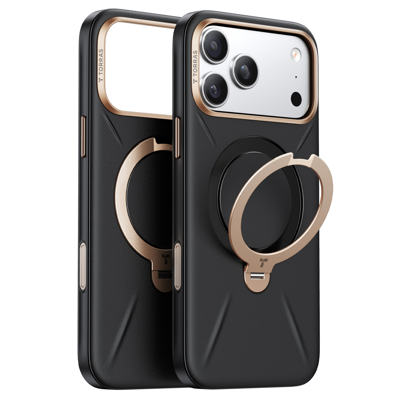 Torras iPhone 17 Pro Max (6.9") 2025 Ostand Spin VegSkin Case - Black , Full Camera Control Button Coverage, Premium Vegan Leather, Fit for MagSafe