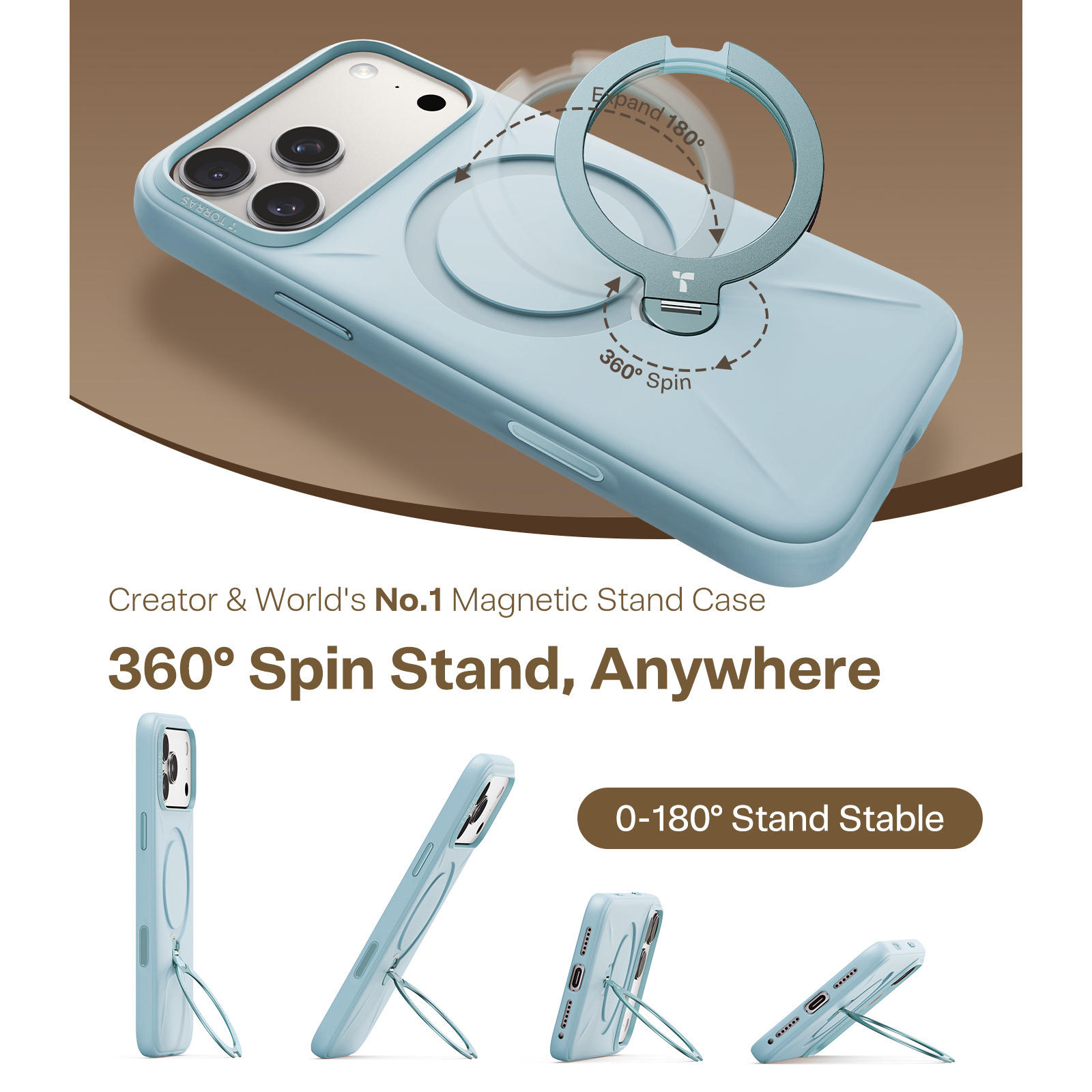 Torras iPhone 17 Pro Max (6.9") 2025 Ostand Spin Softune Case - Baby Blue Full Camera Control Button Coverage - Soft Liquid Silicone Cozy Grip - MagSafe Compatible - 360 Spin Kickstand