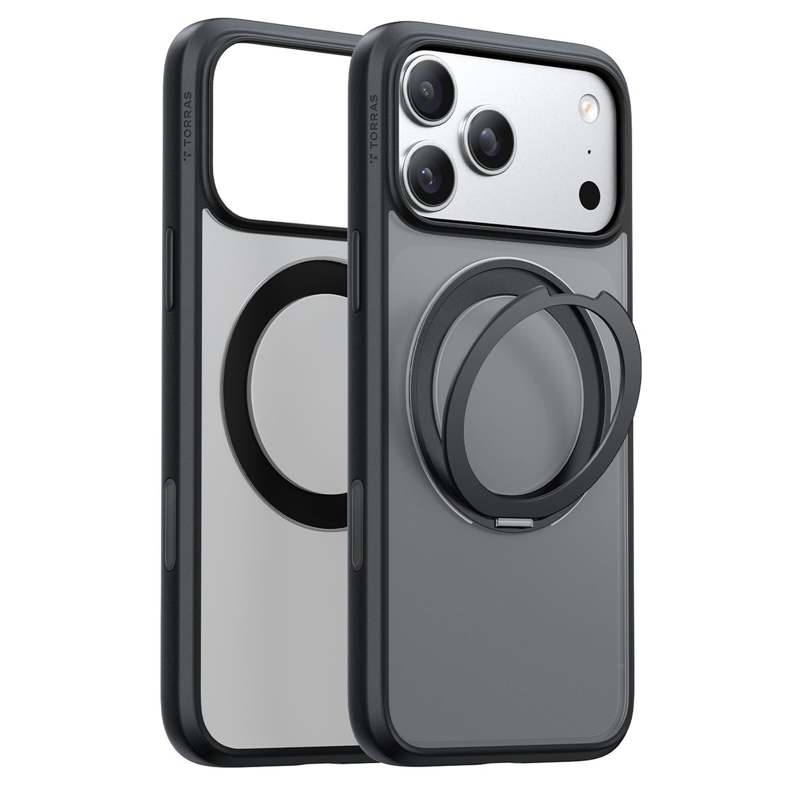 Torras iPhone 17 Pro Max (6.9") 2025 Ostand Pro Case - Black , Full Camera Control Button Coverage, MagSafe Compatible, Military Grade Drop Protection, MagSafe Compatible, 360 Spin Kickstand