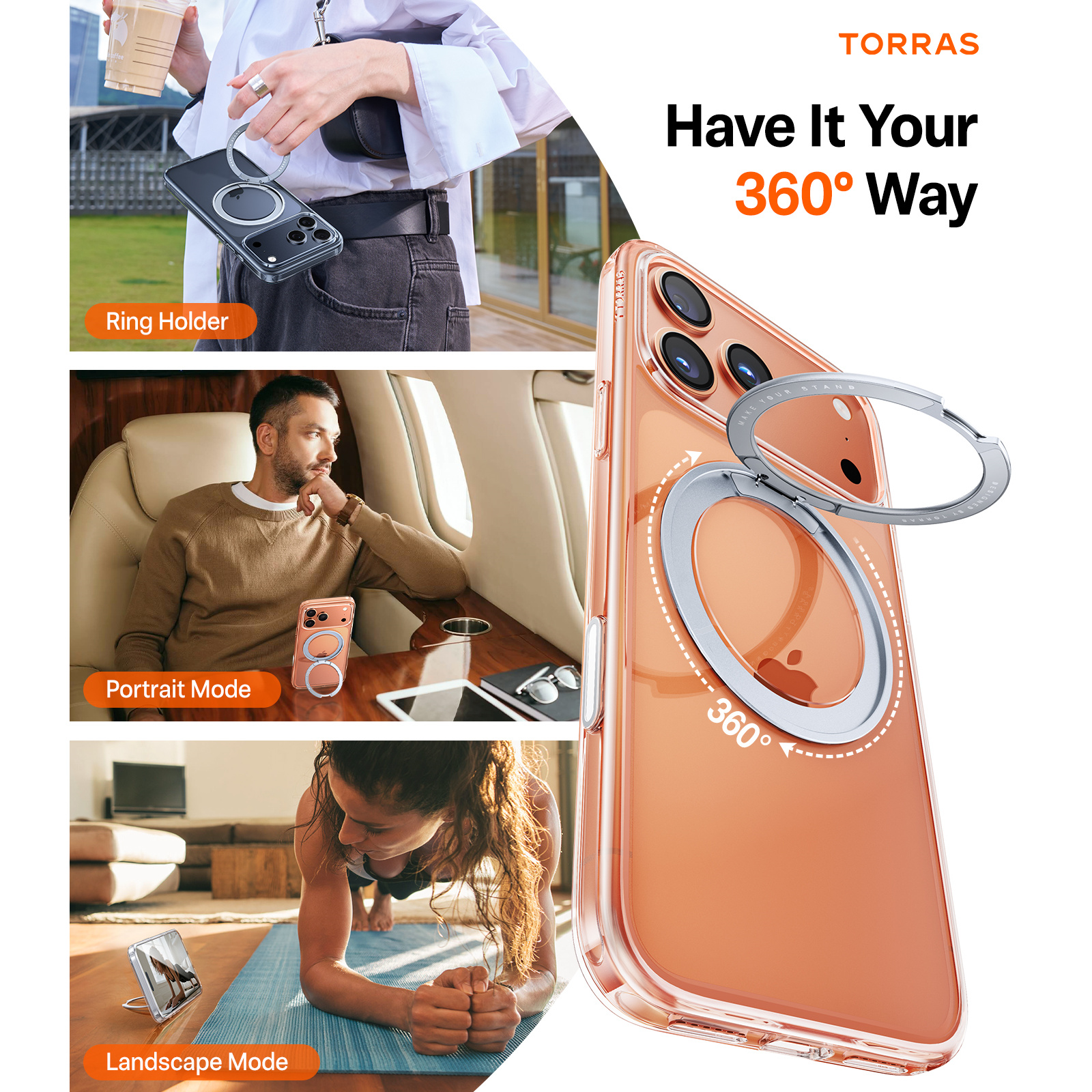 Torras iPhone 17 Pro (6.3") 2025 Ostand Pro Case - Clear Full Camera Control Button Coverage - MagSafe Compatible - Military Grade Drop Protection - MagSafe Compatible - 360 Spin Kickstand