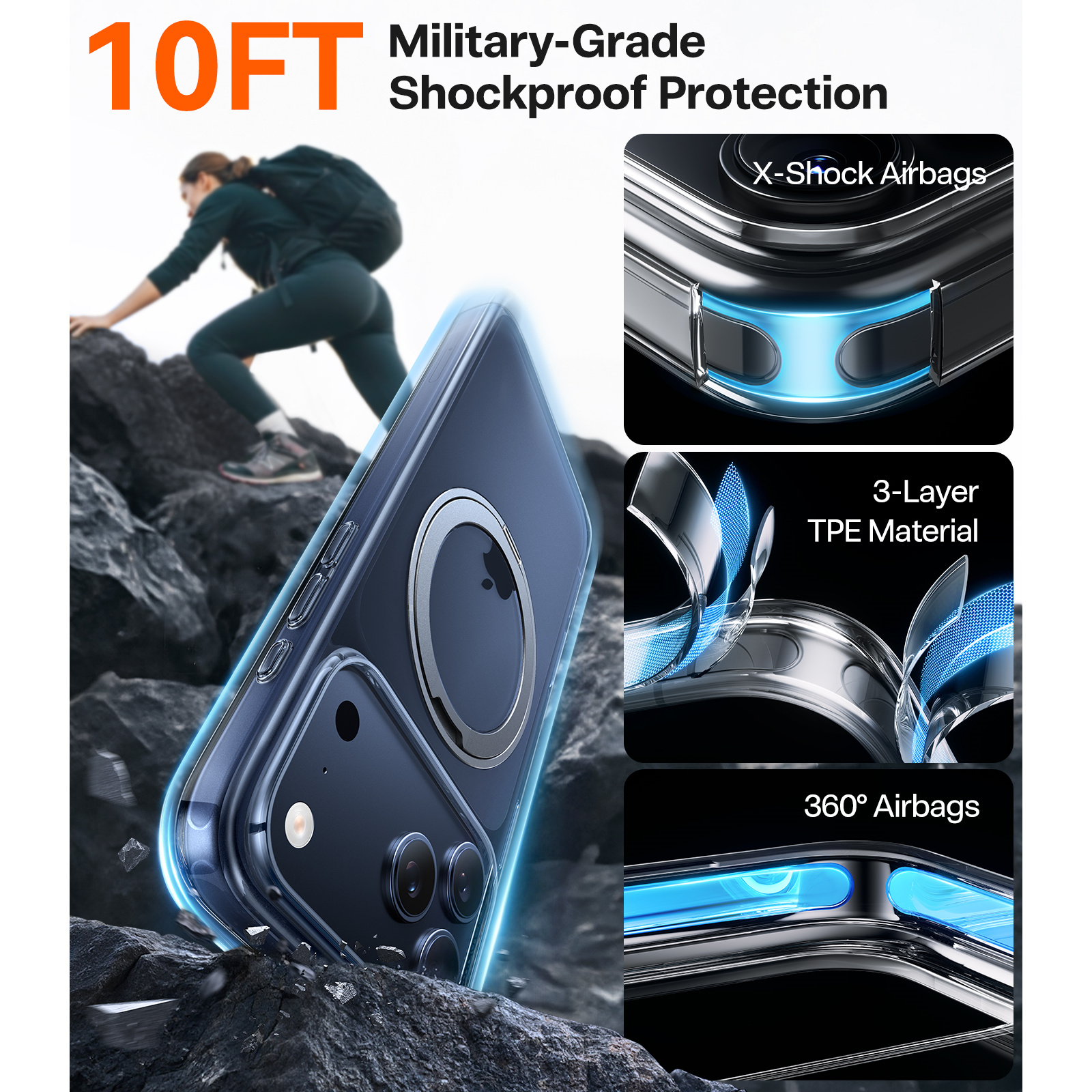 Full Camera Control Button Coverage - MagSafe Compatible - Military Grade Drop Protection - MagSafe Compatible - 360 Spin Kickstand
