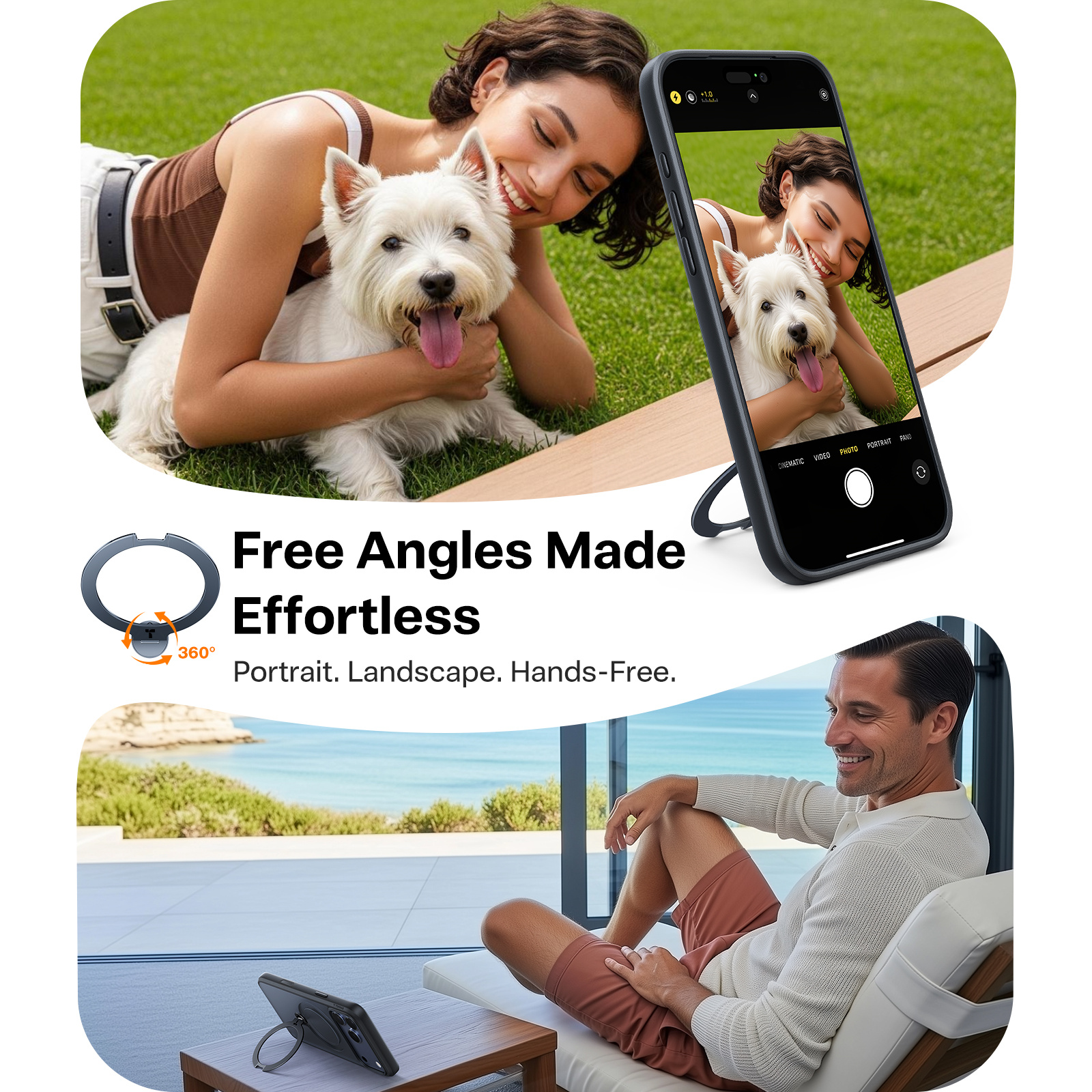 , Full Camera Control Button Coverage, Fit for MagSafe, Mil-STD Protective, 360° Spin Kickstand