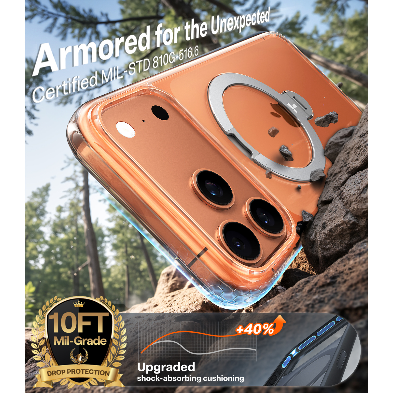 Full Camera Control Button Coverage - Fit for MagSafe - Mil-STD Protective - 360° Spin Kickstand