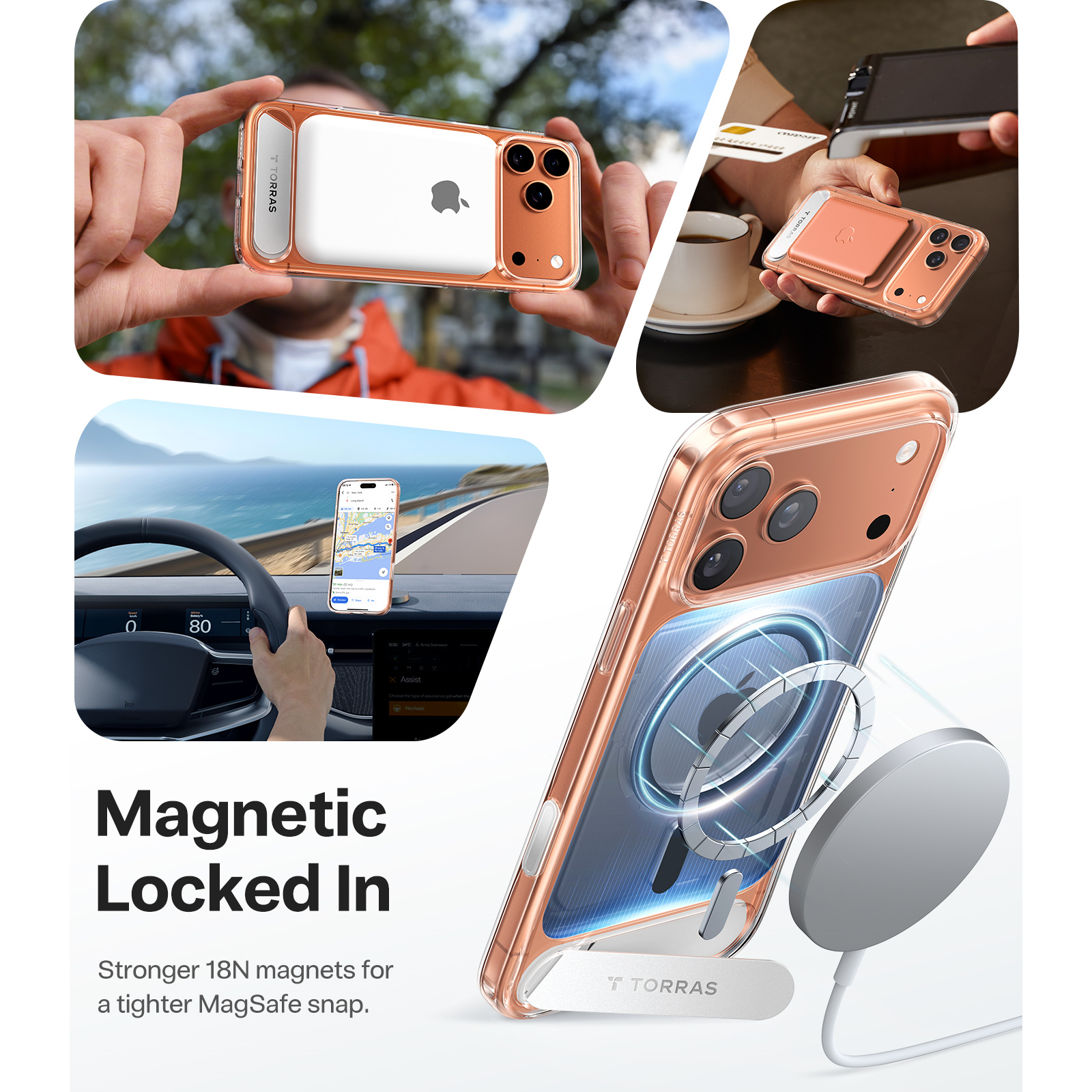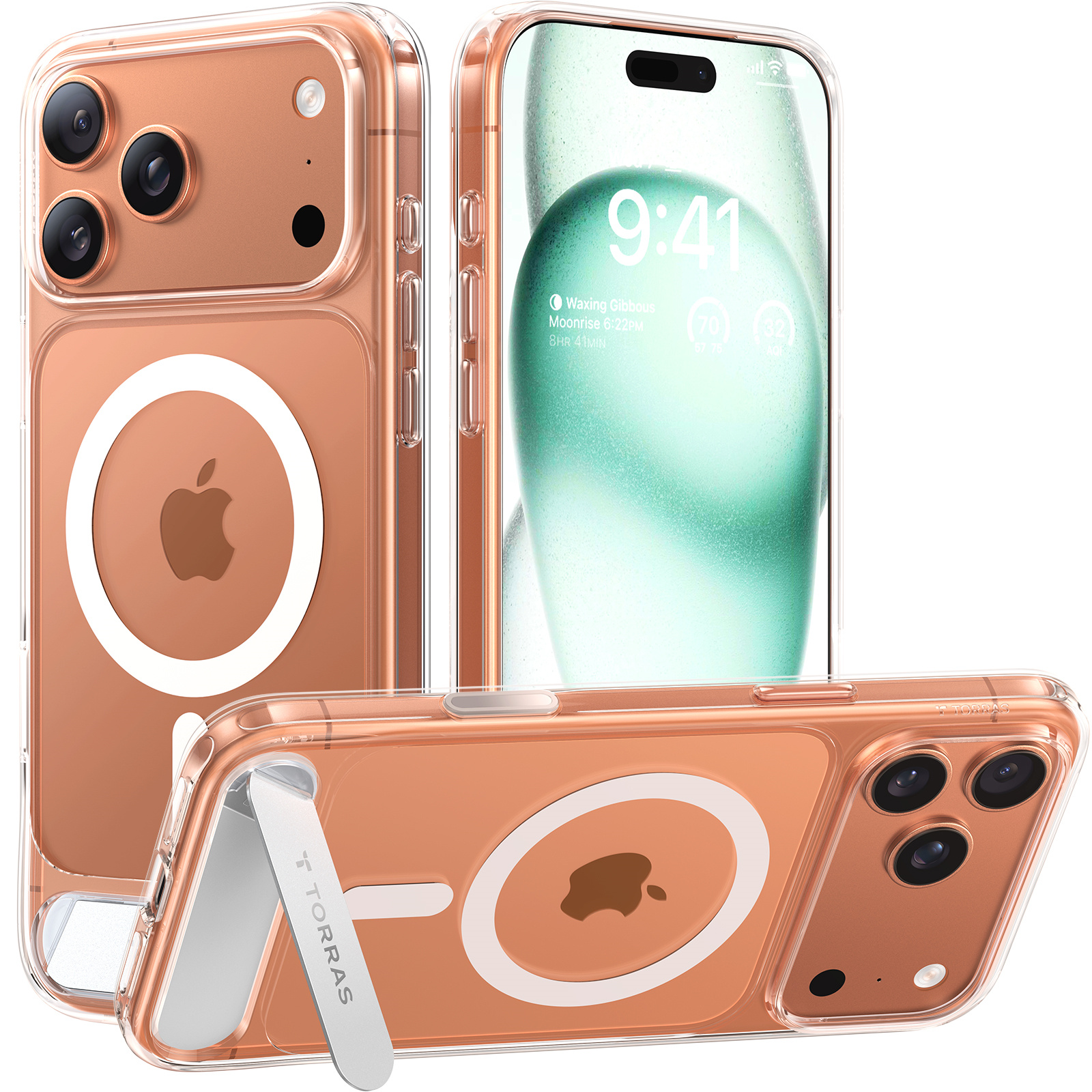 Torras iPhone 17 Pro Max (6.9") 2025 Pstand Case - Clear Full Camera Control Button Coverage - Adjustable Kickstand - Fit for MagSafe - Military Grade Drop Protection - Slim