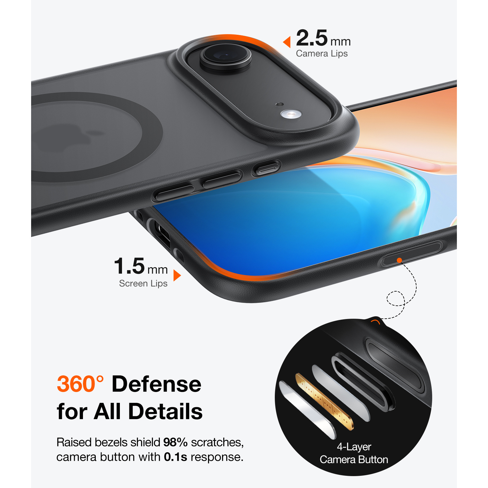 Torras iPhone Air (6.5") 2025 Guardian Magnetic Case - Black Full Camera Control Button Coverage - Fit for MagSafe - Military Grade Drop Protection - Slim Profile & Secure Grip - Includes Exclusive Detachable 3-Color Buttons