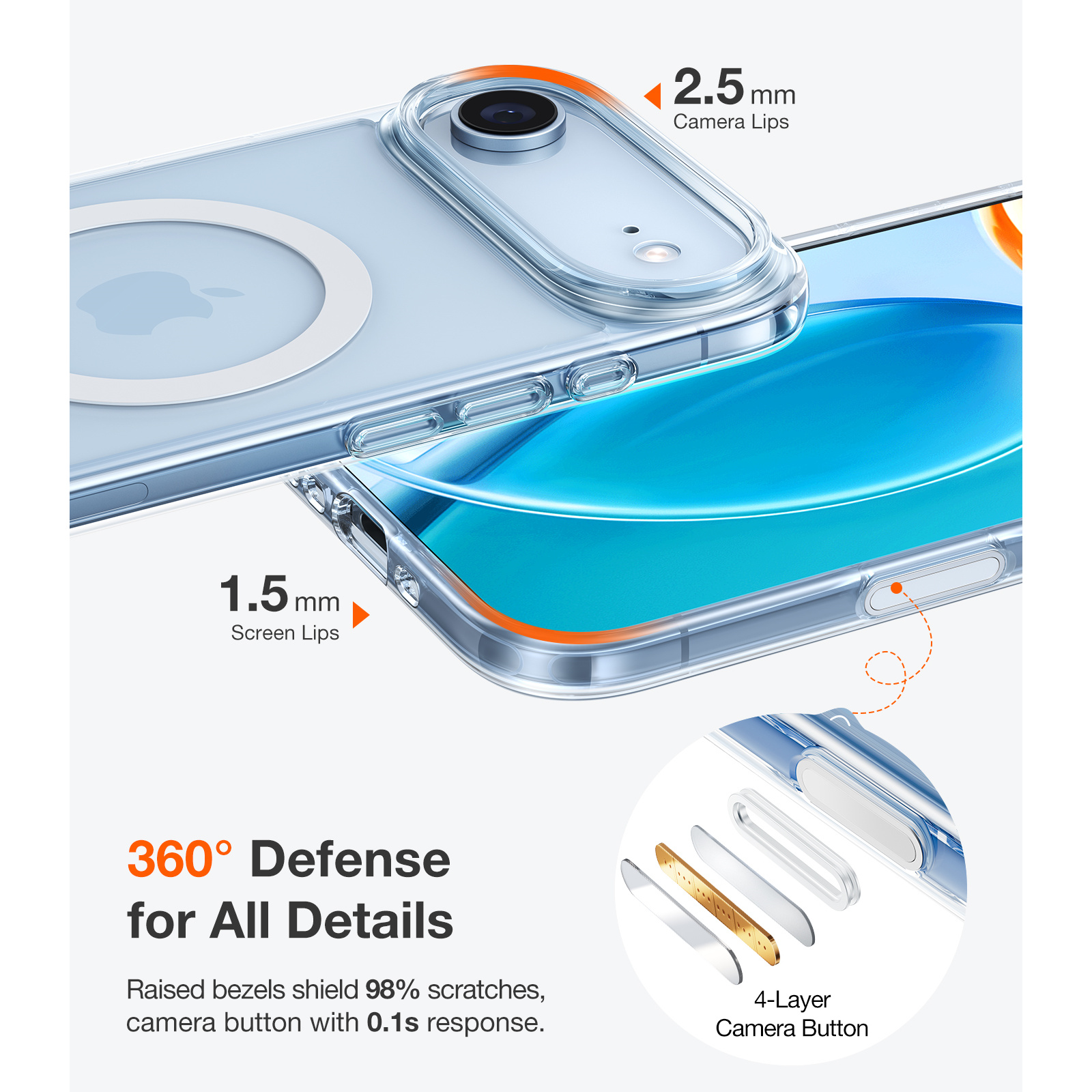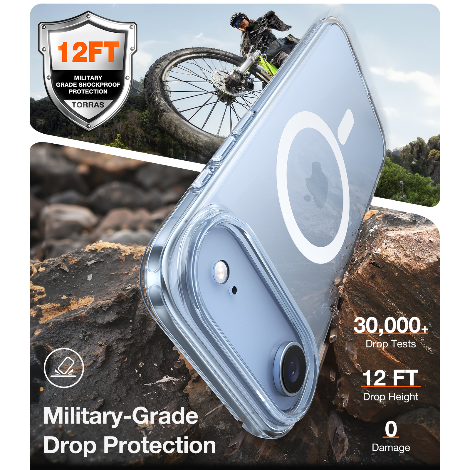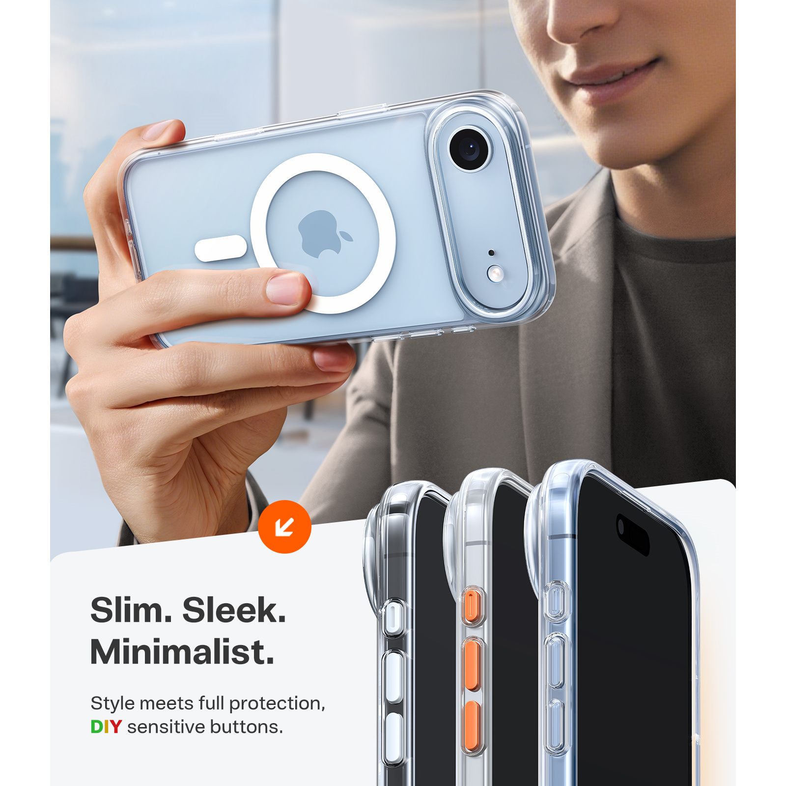 Torras iPhone Air (6.5") 2025 Guardian Magnetic Case - Clear Full Camera Control Button Coverage - Fit for MagSafe - Military Grade Drop Protection - Slim Profile & Secure Grip - Includes Exclusive Detachable 3-Color Buttons
