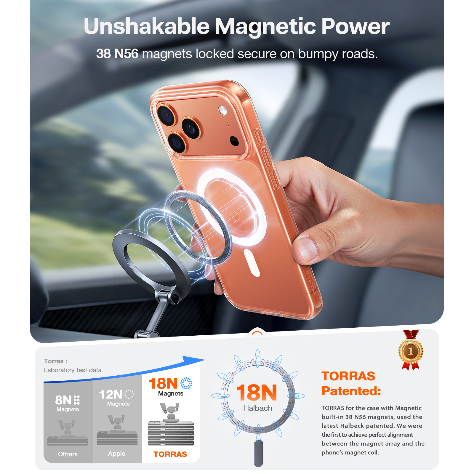 Torras iPhone 17 Pro Max (6.9") 2025 Guardian Magnetic Case - Clear Full Camera Control Button Coverage - Fit for MagSafe - Military Grade Drop Protection - Slim Profile & Secure Grip - Includes Exclusive Detachable 3-Color Buttons