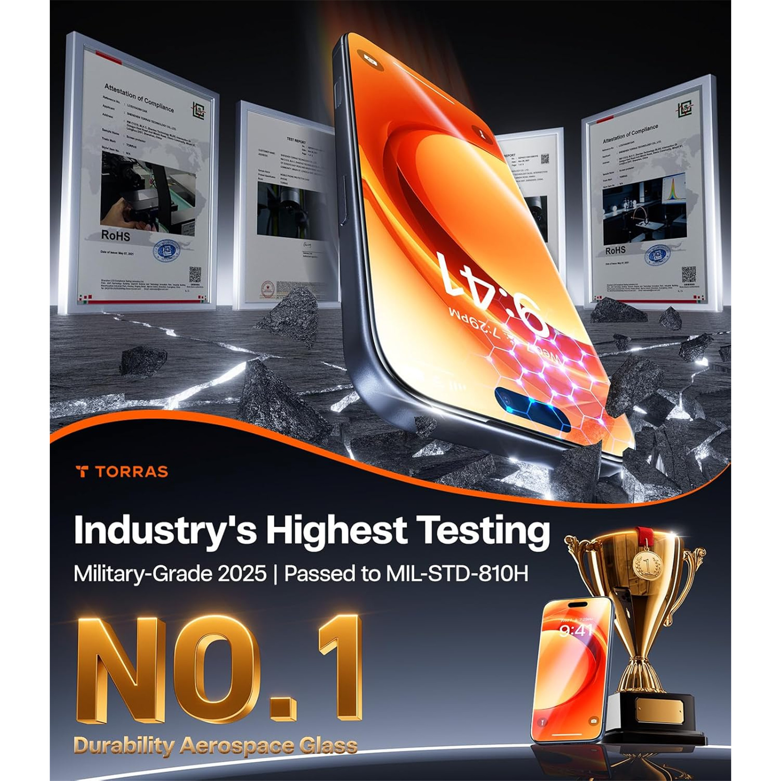 No.1 Military-Grade 9H+ Aerospace Glass for iPhone 17 Pro Max Screen Protector