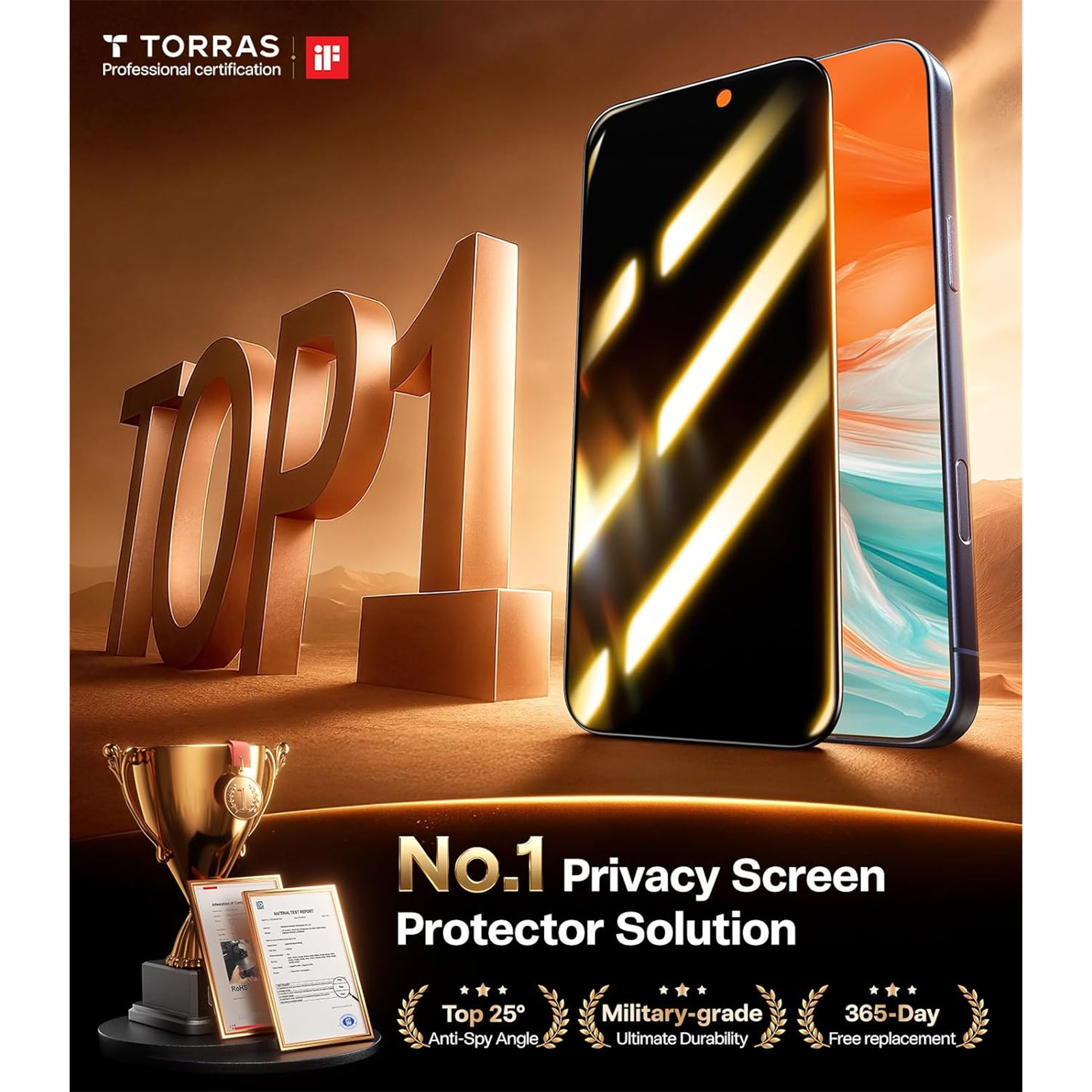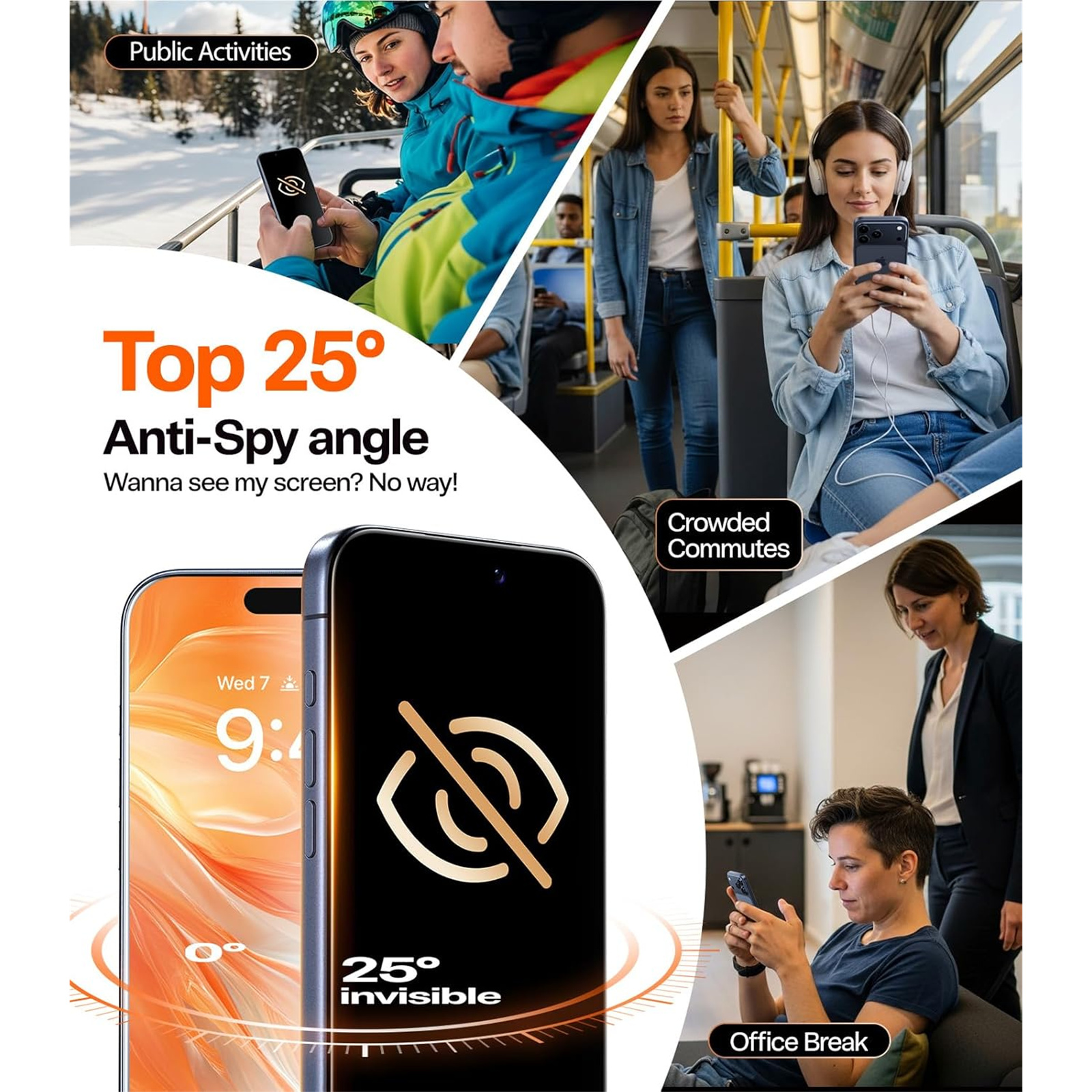 Anti-Shatter, Anti-Spy, Drop Resistant, Full Coverage, Privacy Protector