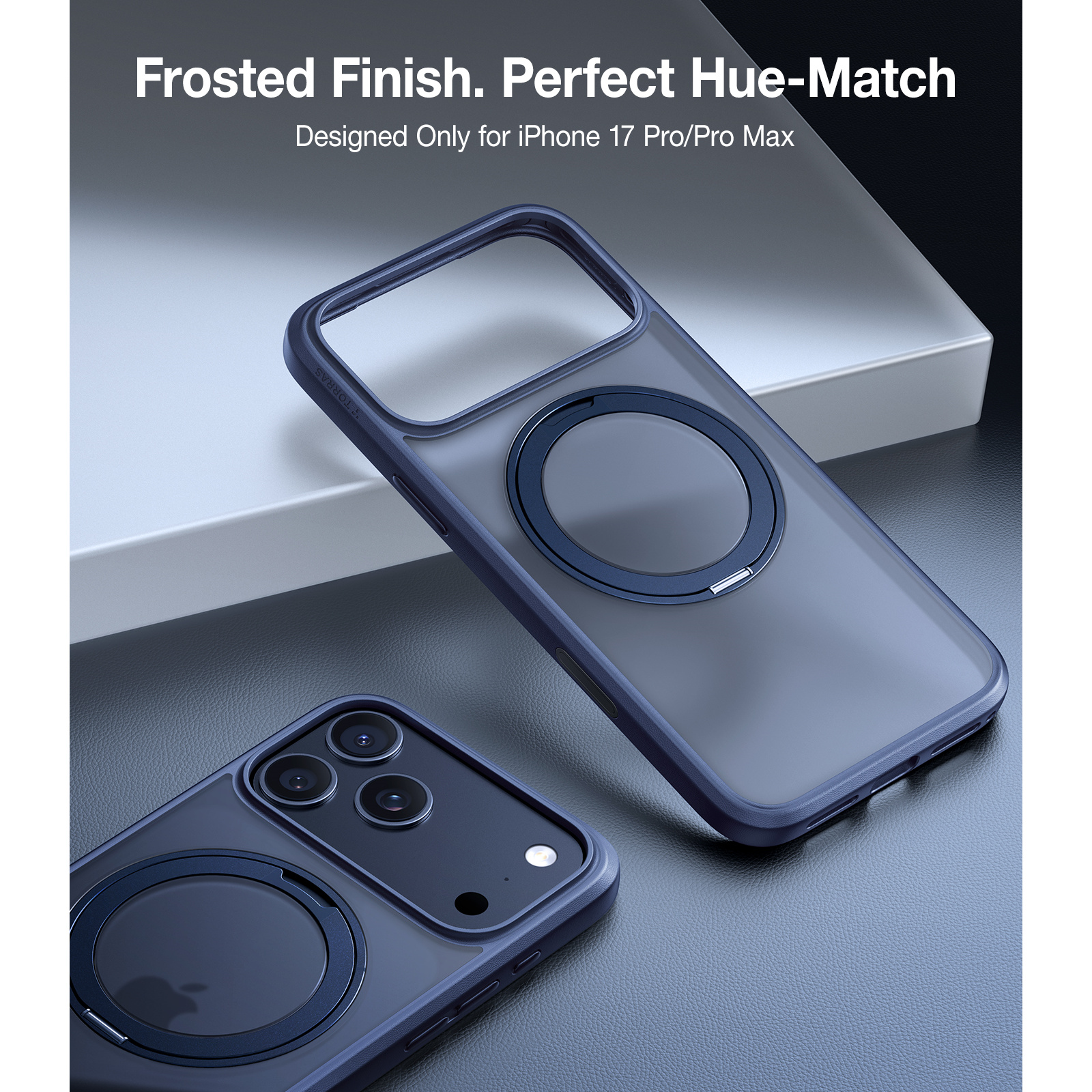 Torras iPhone 17 Pro (6.3") 2025 Ostand Pro Case - Navy Blue Full Camera Control Button Coverage - MagSafe Compatible - Military Grade Drop Protection - MagSafe Compatible - 360 Spin Kickstand