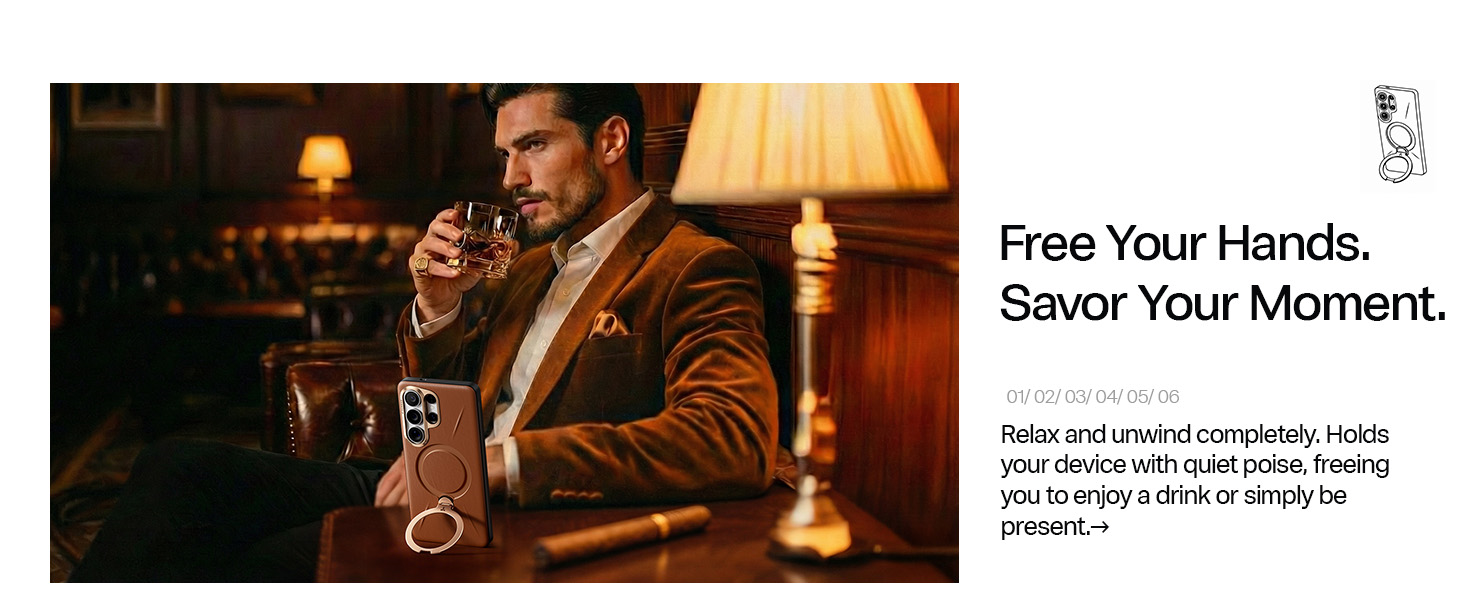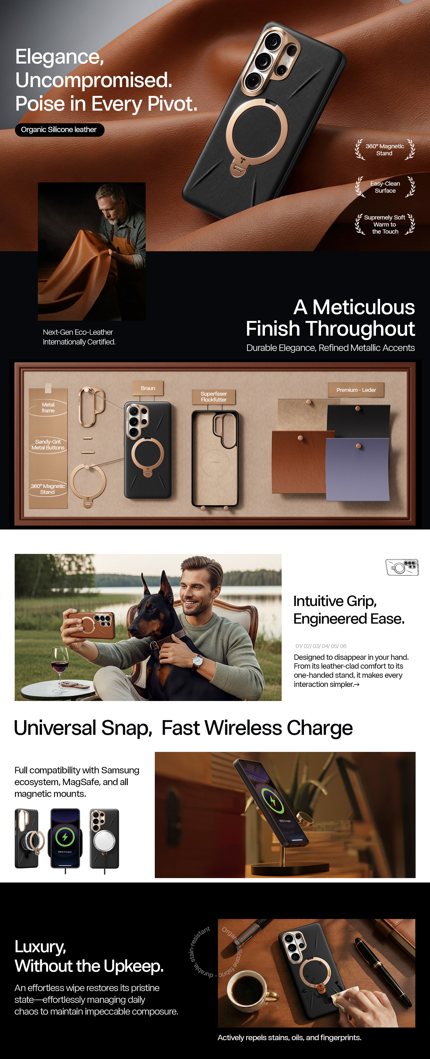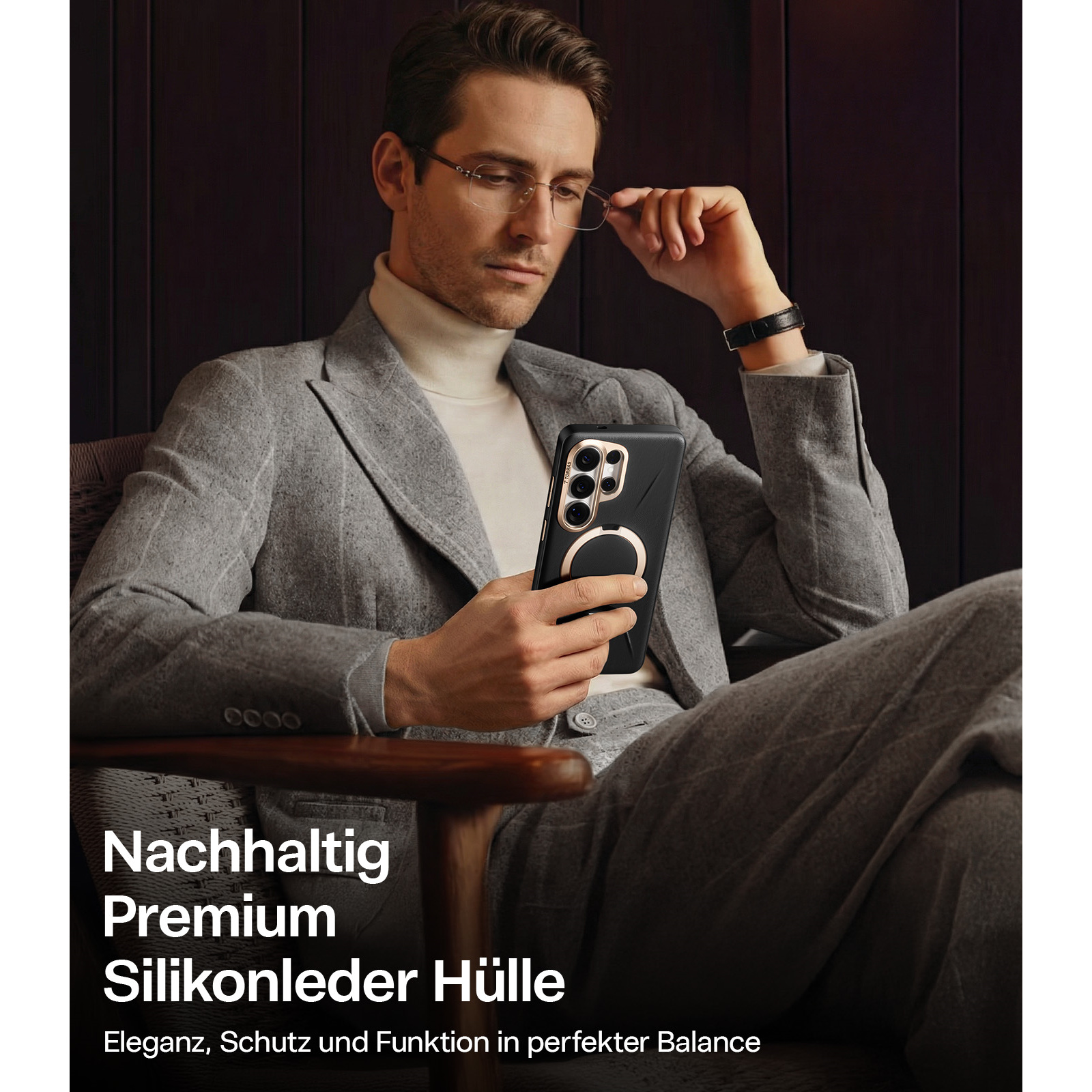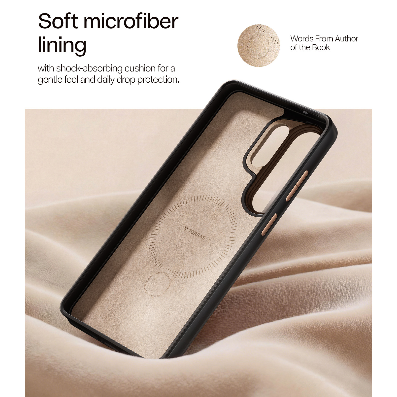 Torras Galaxy S26 Ultra Ostand Spin VegSkin Case - Ivory Black - Premium Vegan Leather - Fit for MagSafe