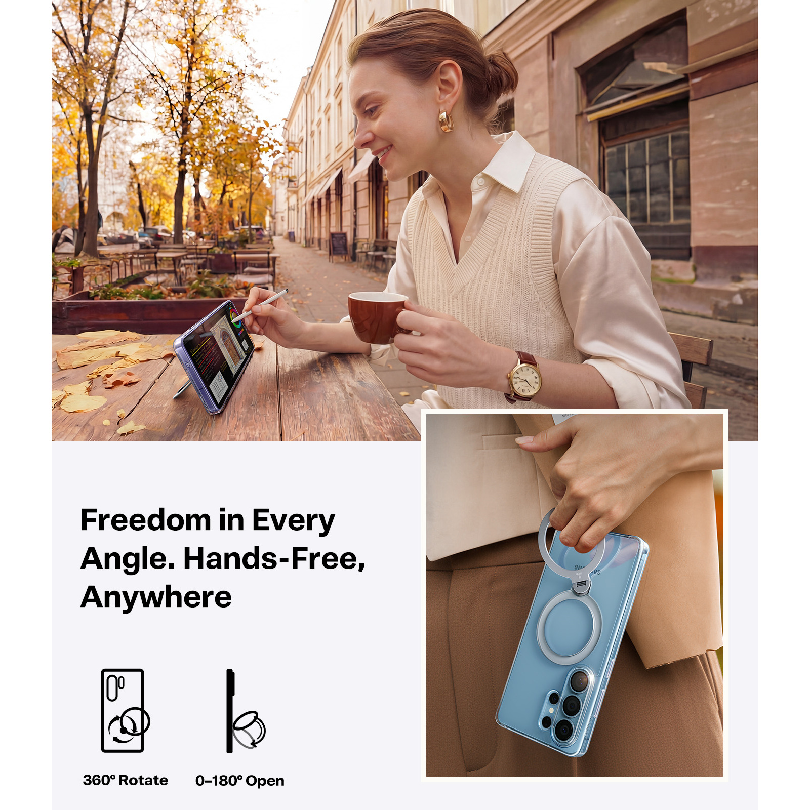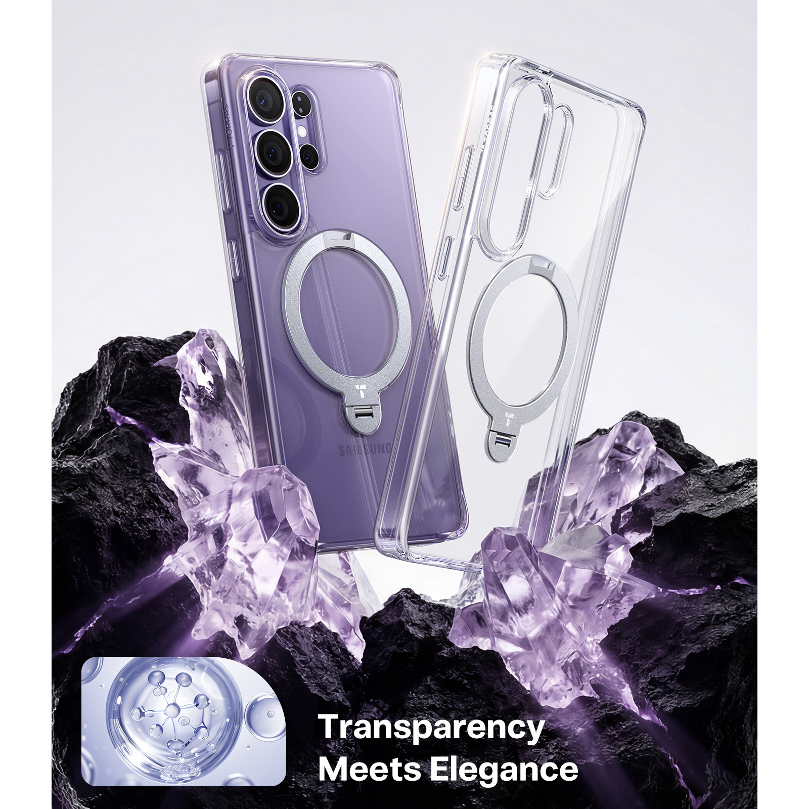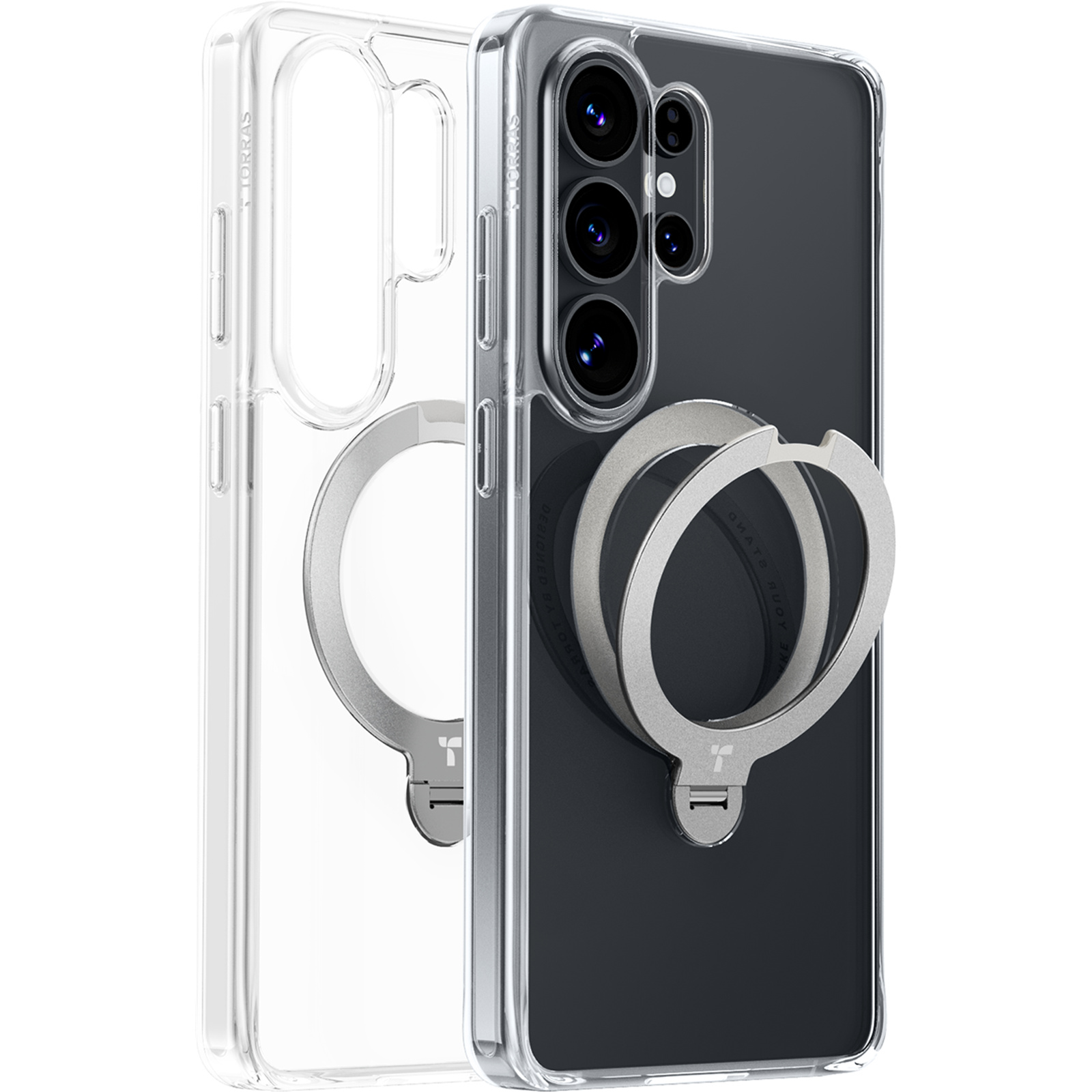 Torras Galaxy S26 Ultra Ostand Q3 Spin Case - Clear - Fit for MagSafe - Mil-STD Protective - 360° Spin Kickstand