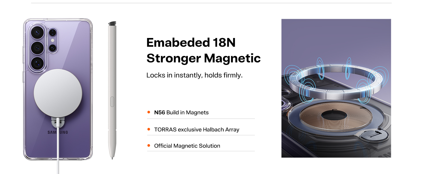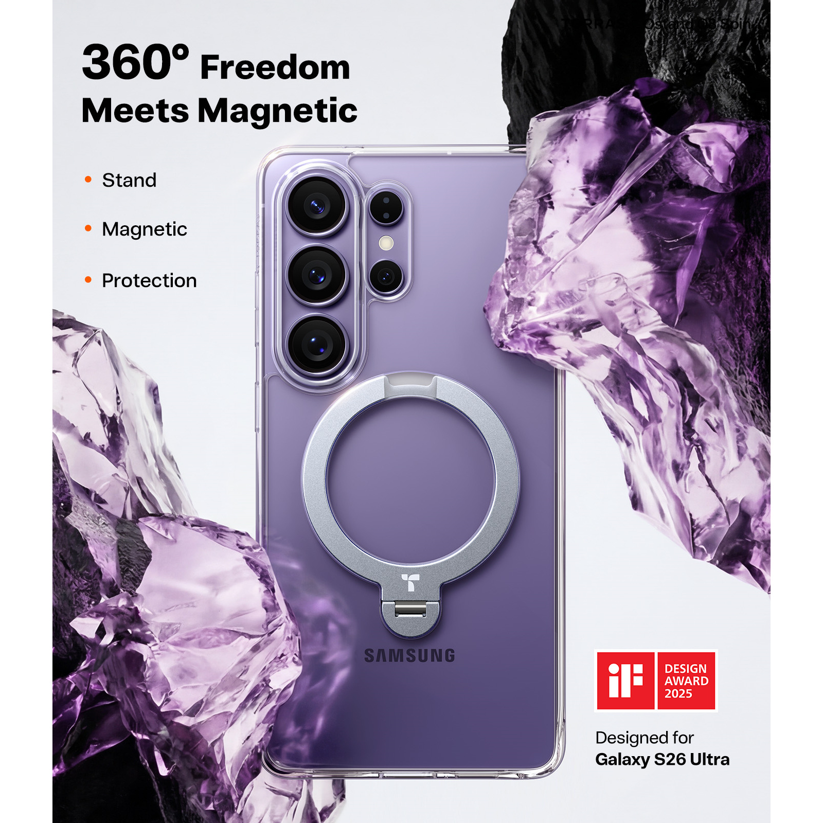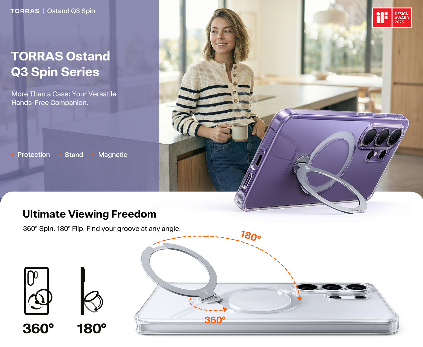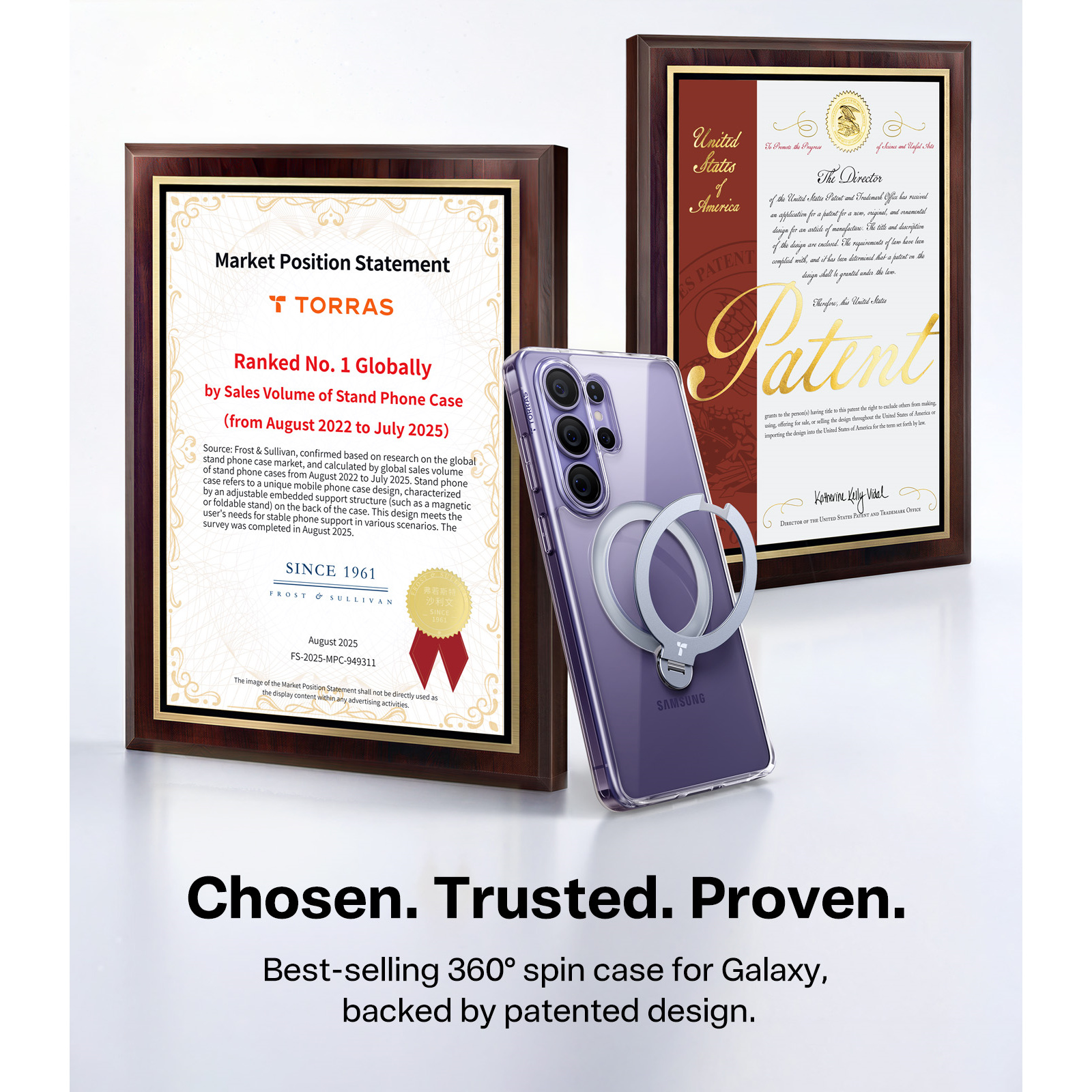 Torras Galaxy S26 Ultra Ostand Q3 Spin Case - Clear - Fit for MagSafe - Mil-STD Protective - 360° Spin Kickstand
