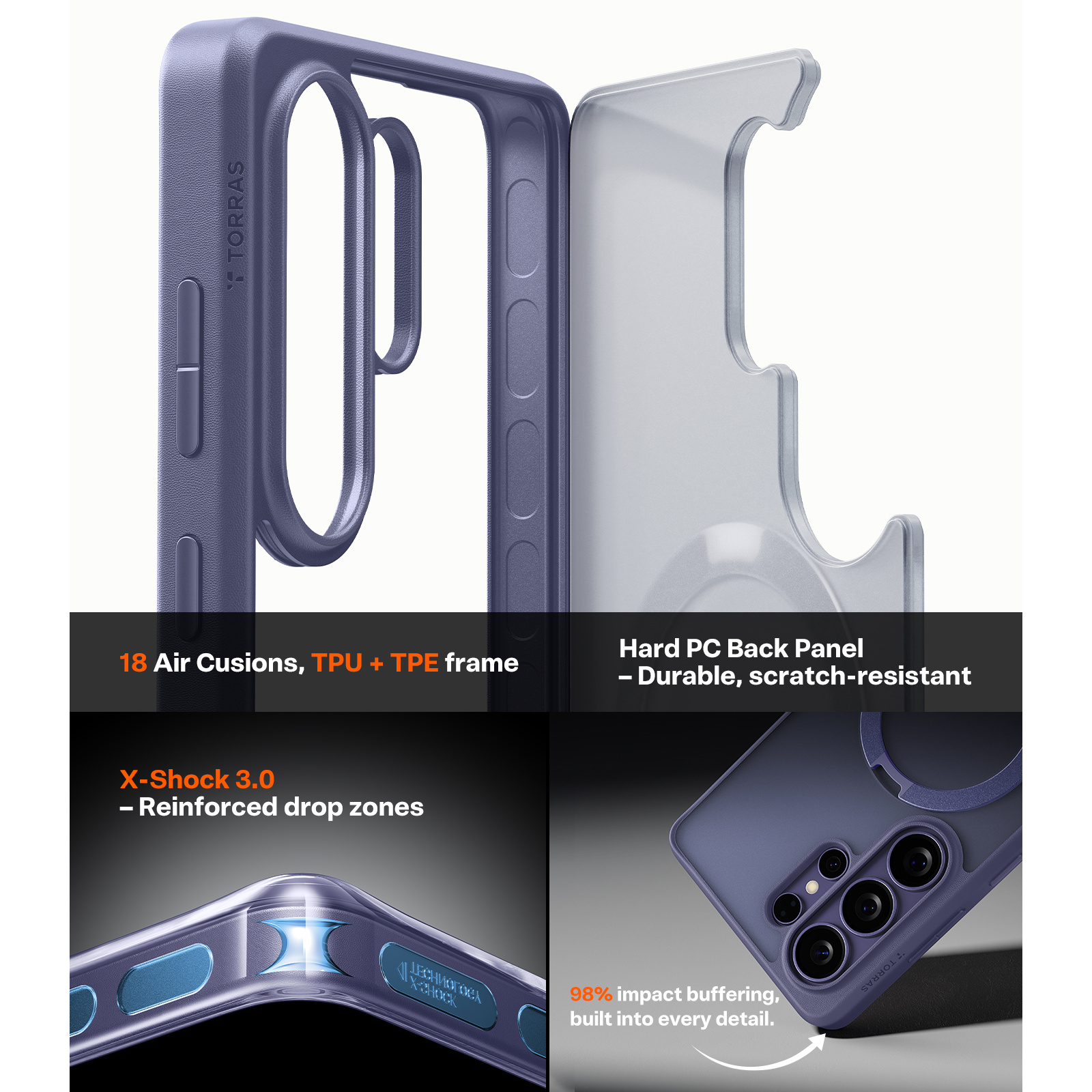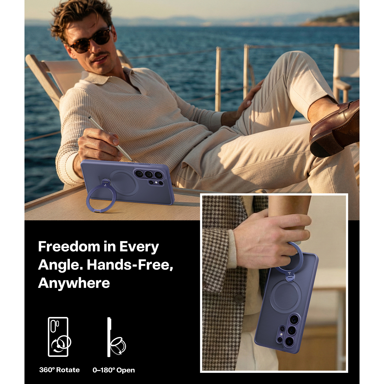 Torras Galaxy S26 Ultra Ostand Q3 Spin Case - Dark Purple - Fit for MagSafe - Mil-STD Protective - 360° Spin Kickstand