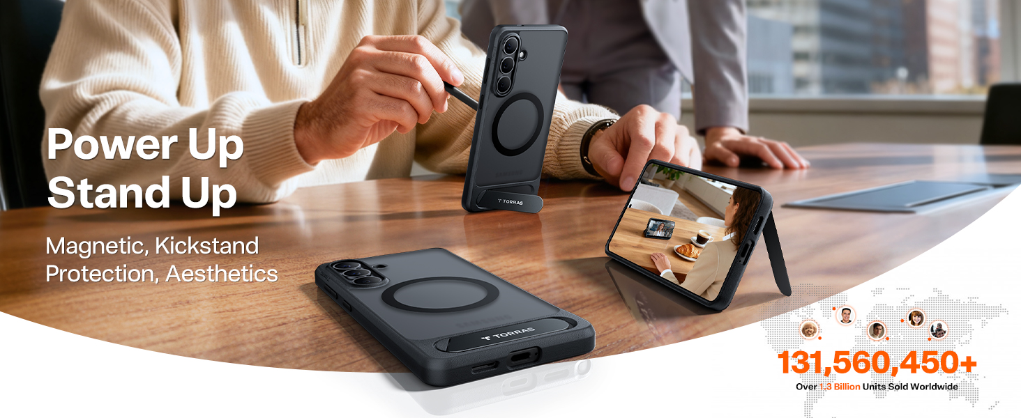 Torras Galaxy S26 Ostand L1 Case - Black - Magnetic Wireless Compatible - Built-in Durable Kickstand - Mil-Grade Certified Protection - Wireless Charging Compatible