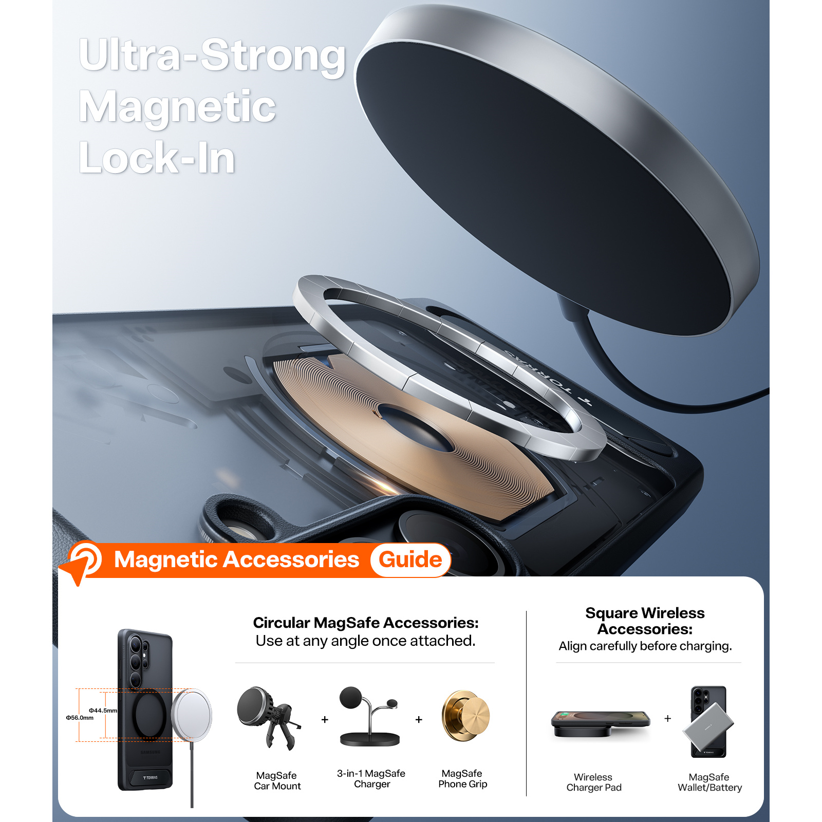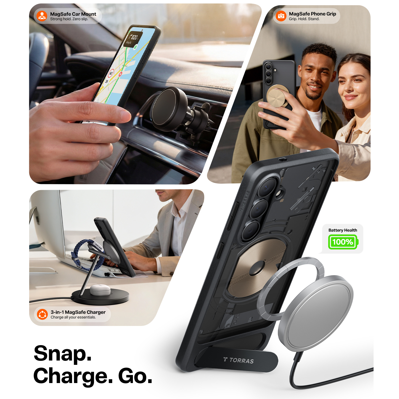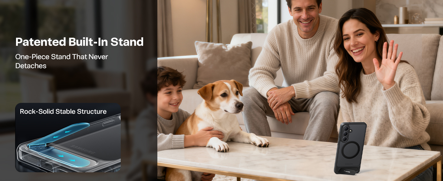 - Magnetic Wireless Compatible - Built-in Durable Kickstand - Mil-Grade Certified Protection - Wireless Charging Compatible